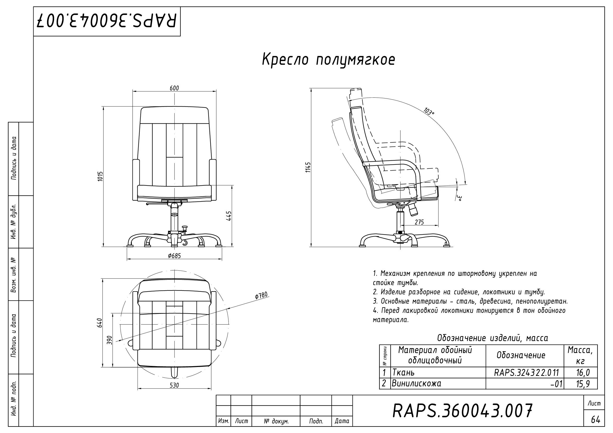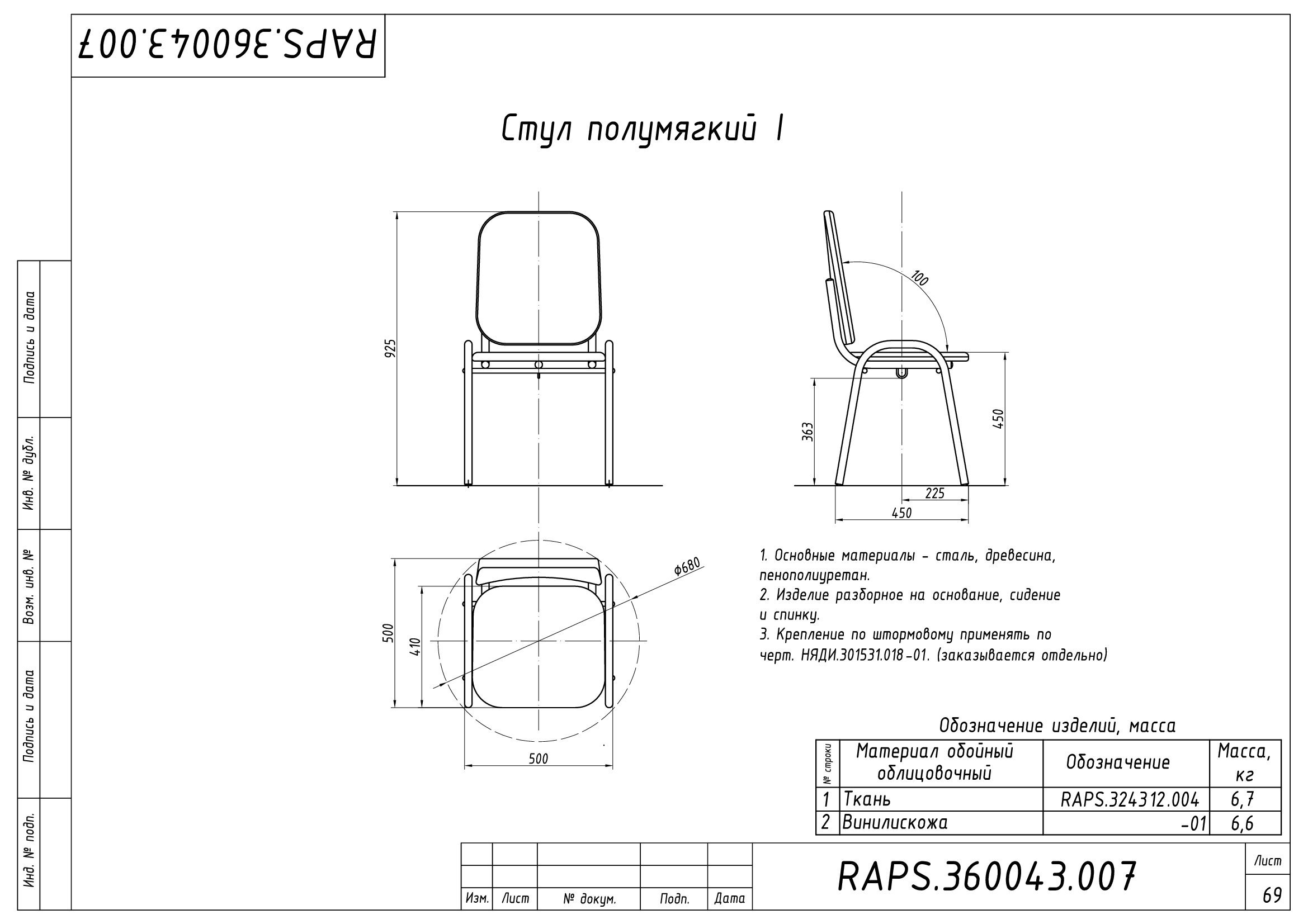 Стул полумягкий "стандарт" смк1 паспорт изделия