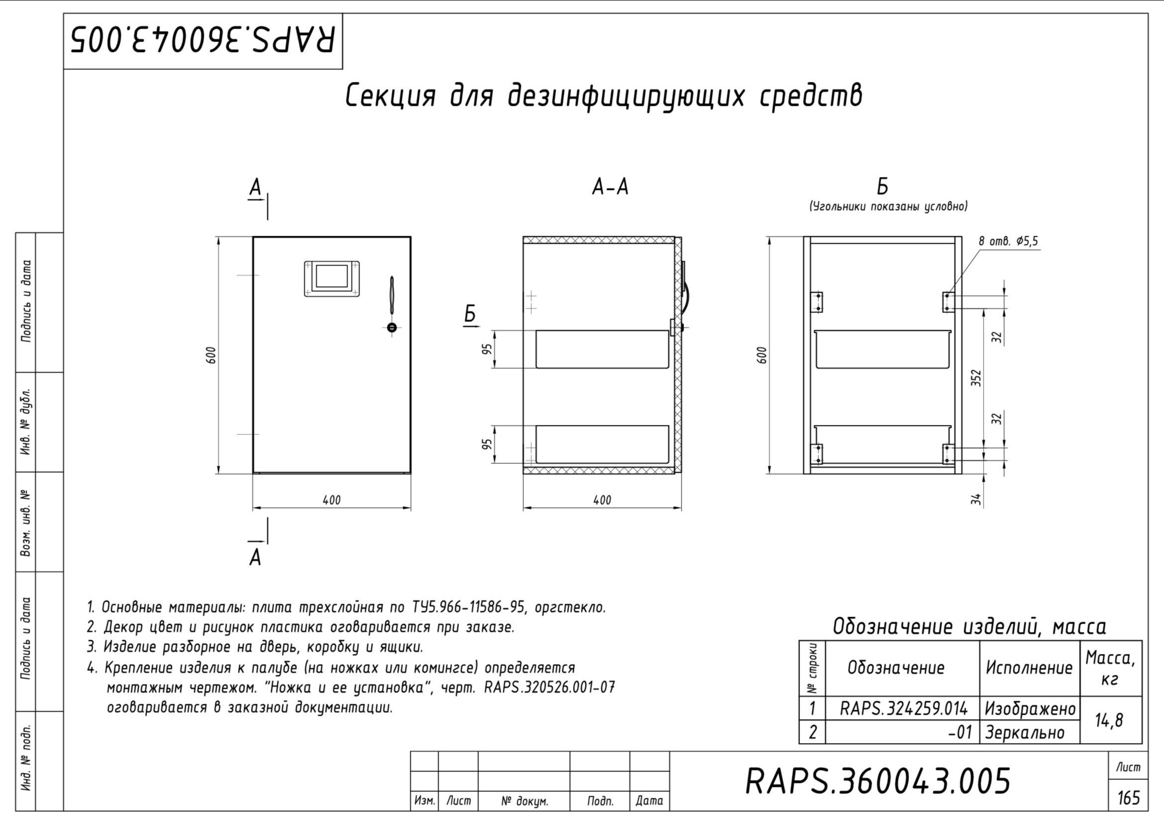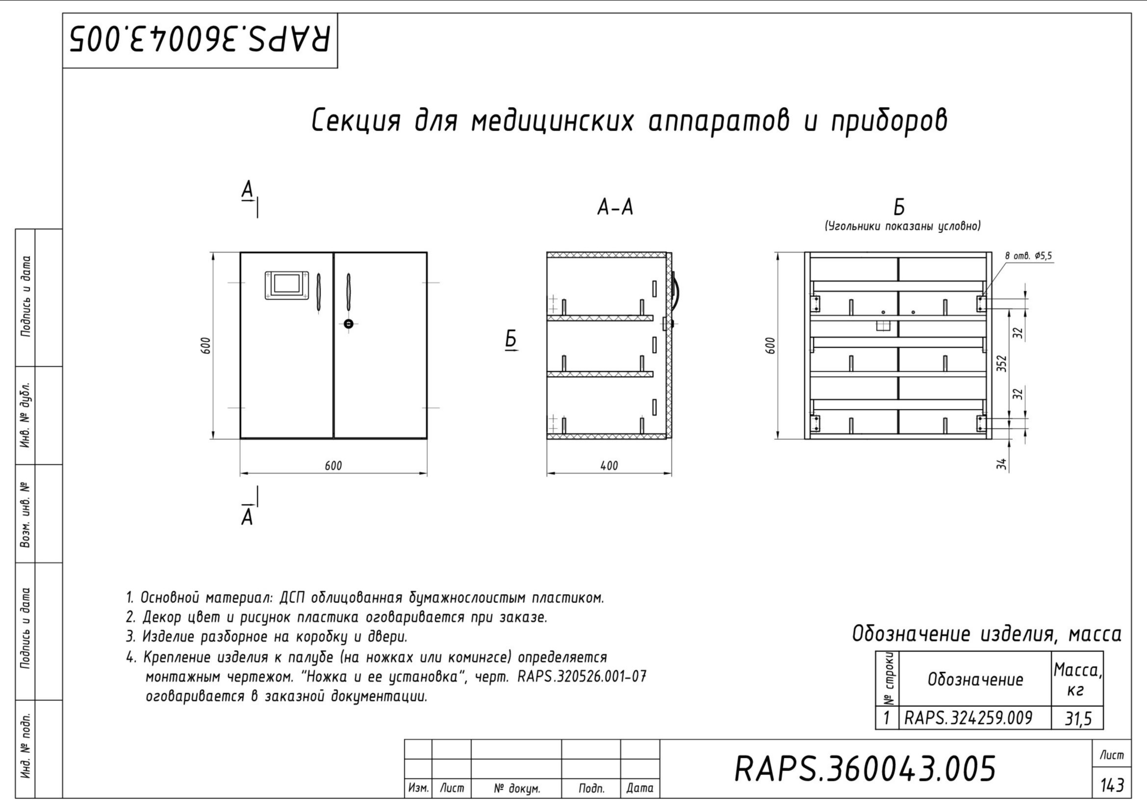 Стол камбузный разделочный — Raps.324143.006