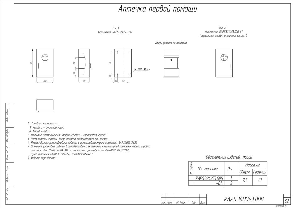 Чертеж металлической аптечки