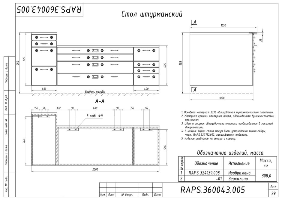 Штурманский стол для карт чертеж