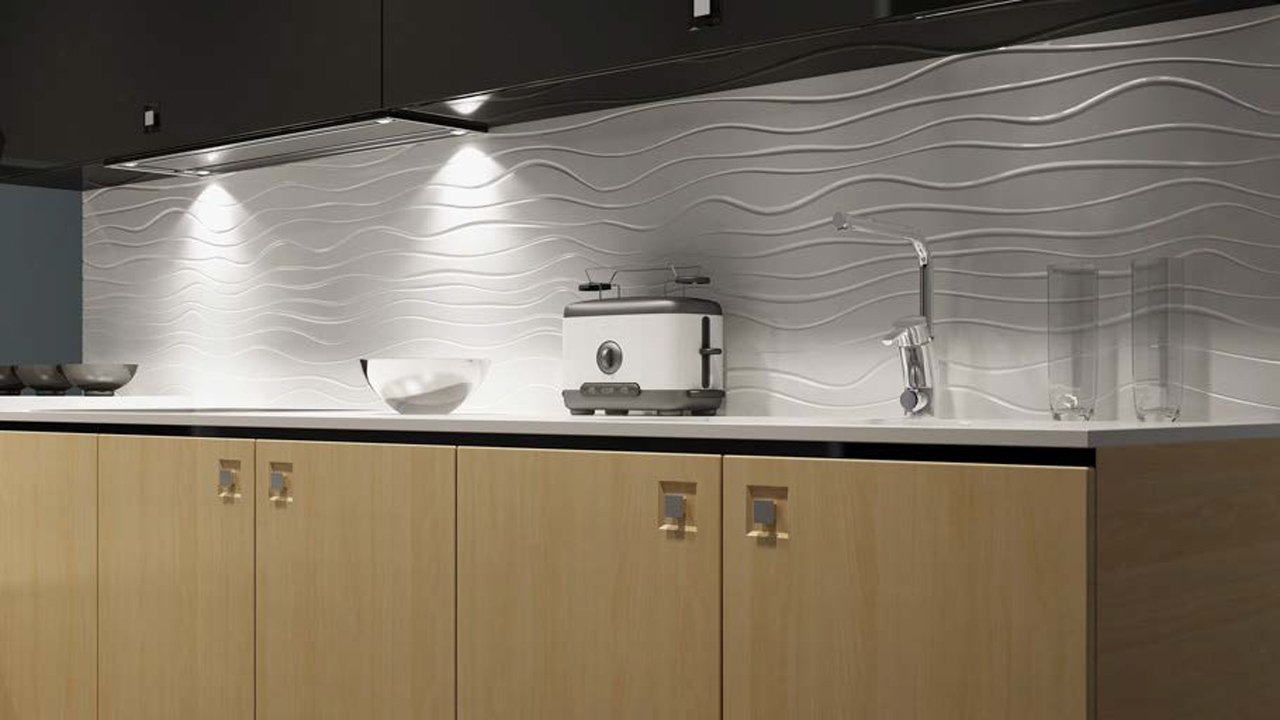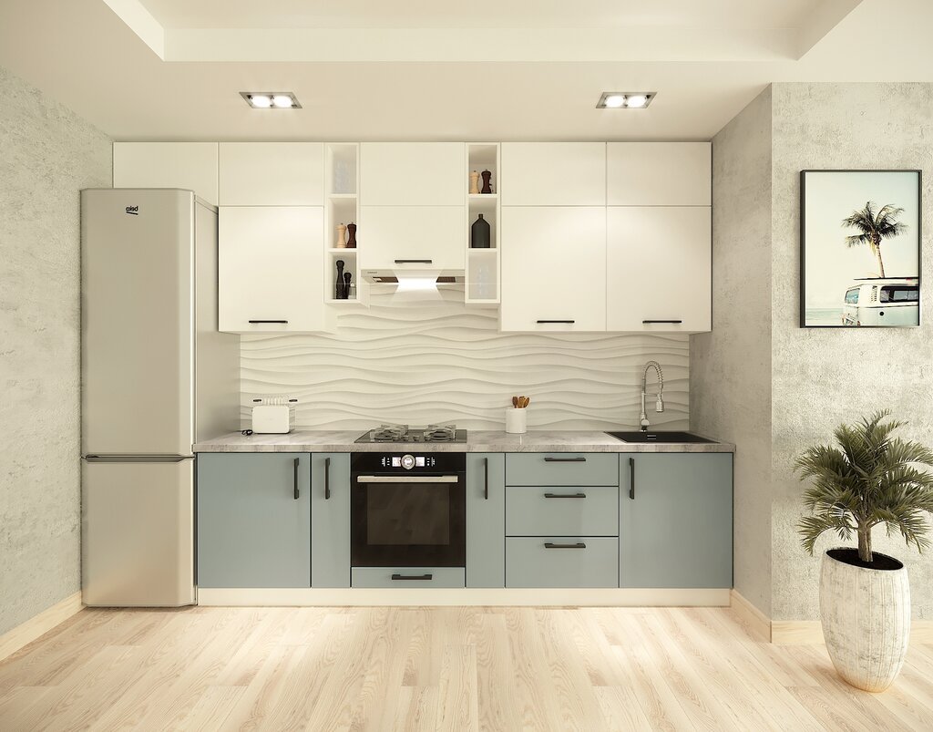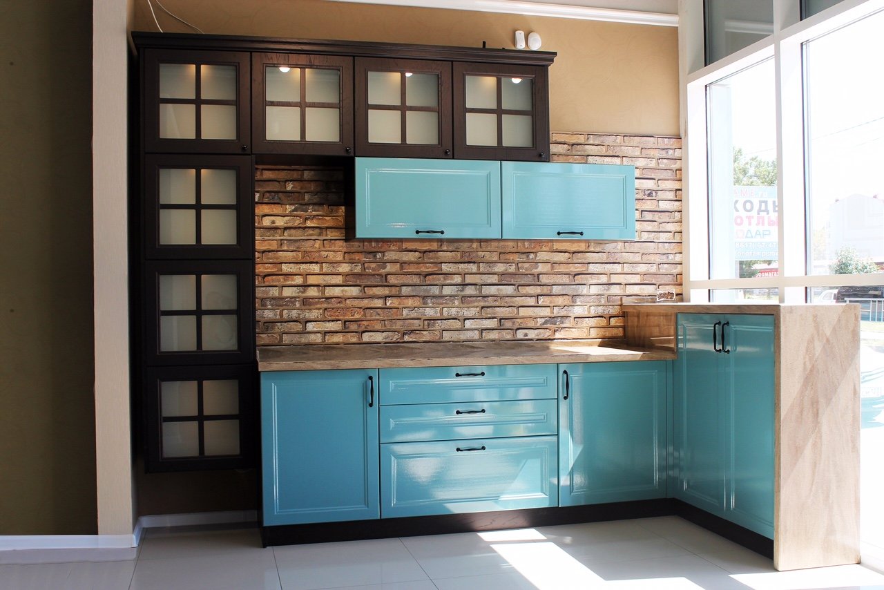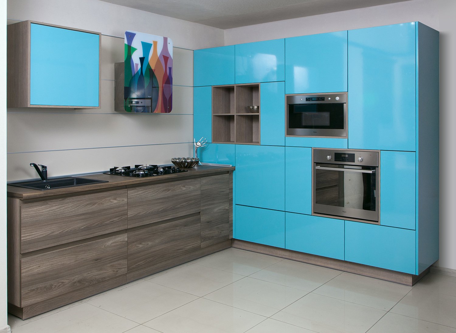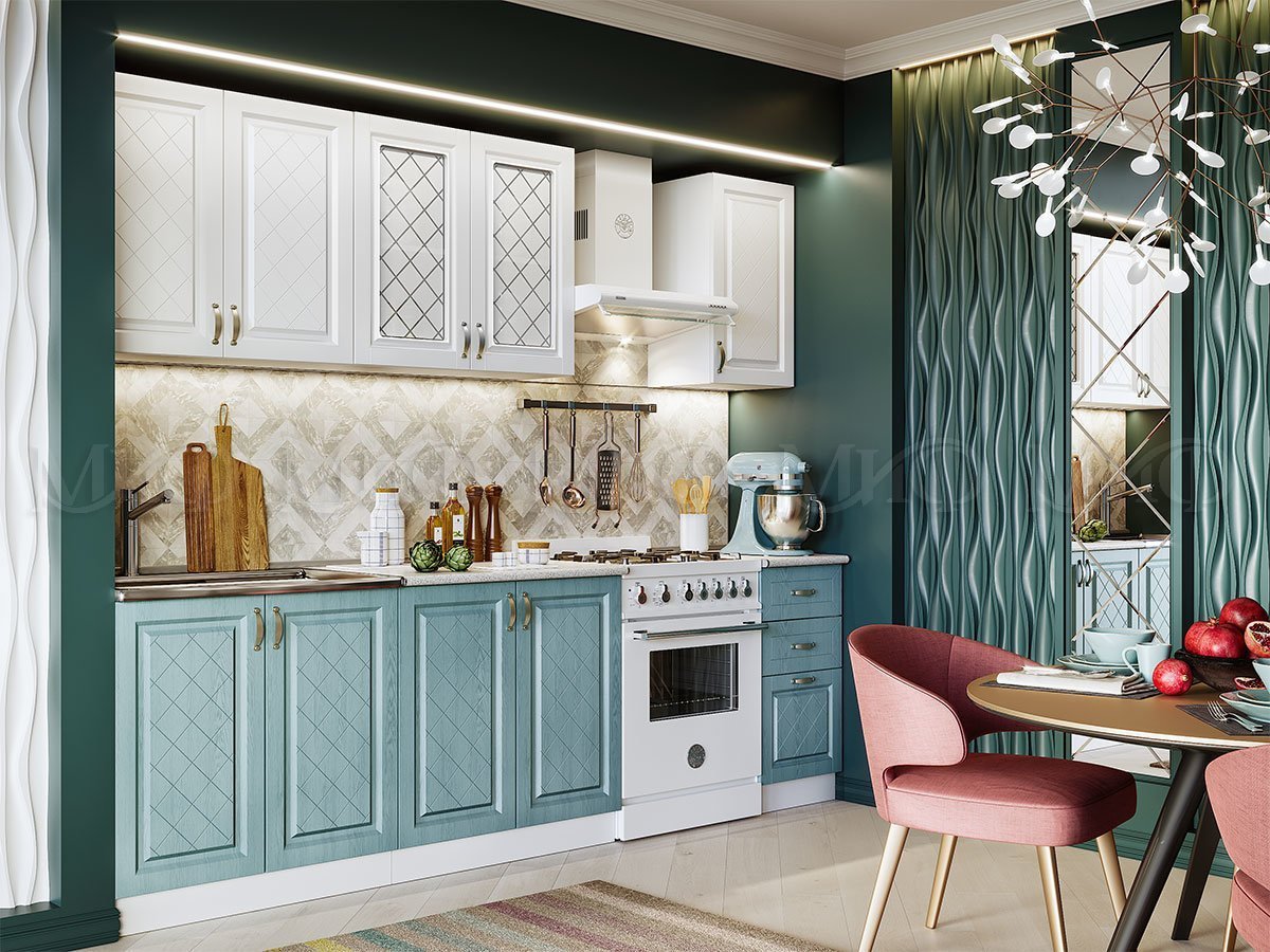 Кухня волна 2,0м (белый глянец теплый/бирюза металлик)