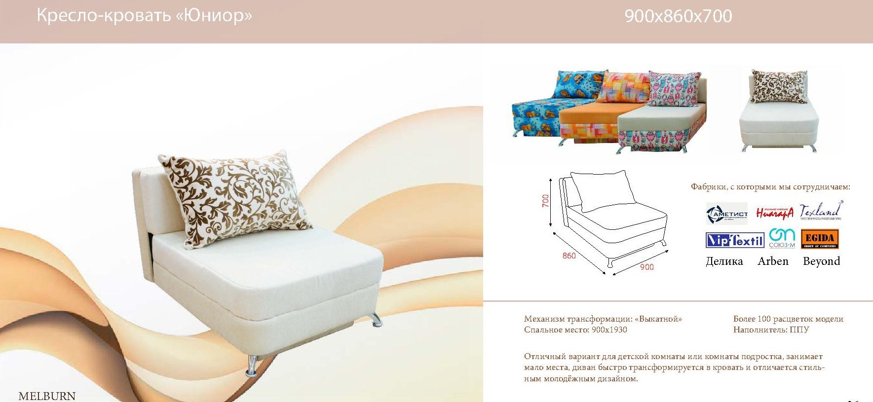 Диван-кровать Юниор Тип-2 900 2000 мягкая спинка