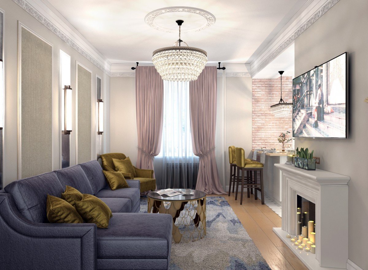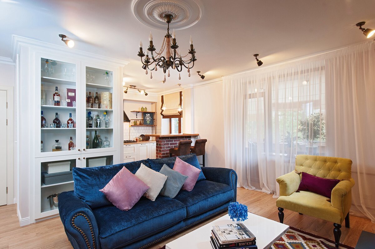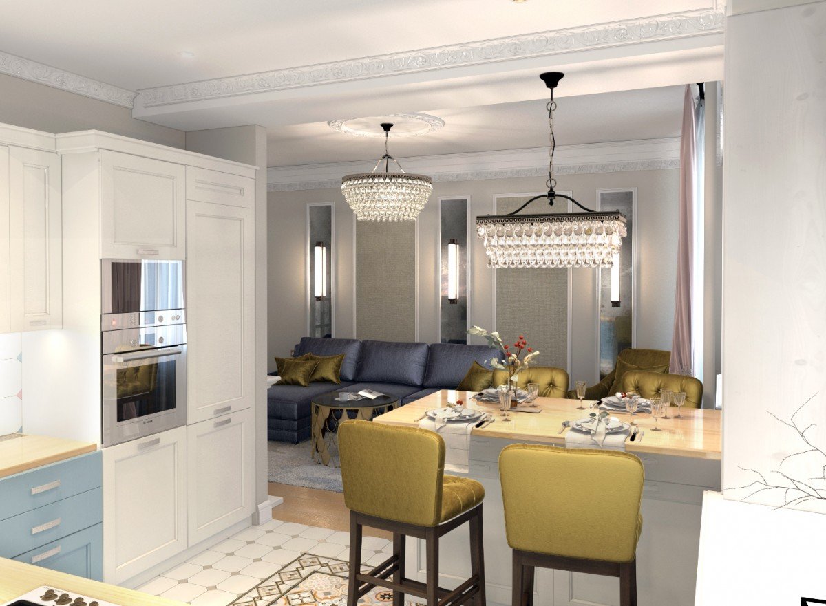 Совмещенная кухня и гостинная в сталинке