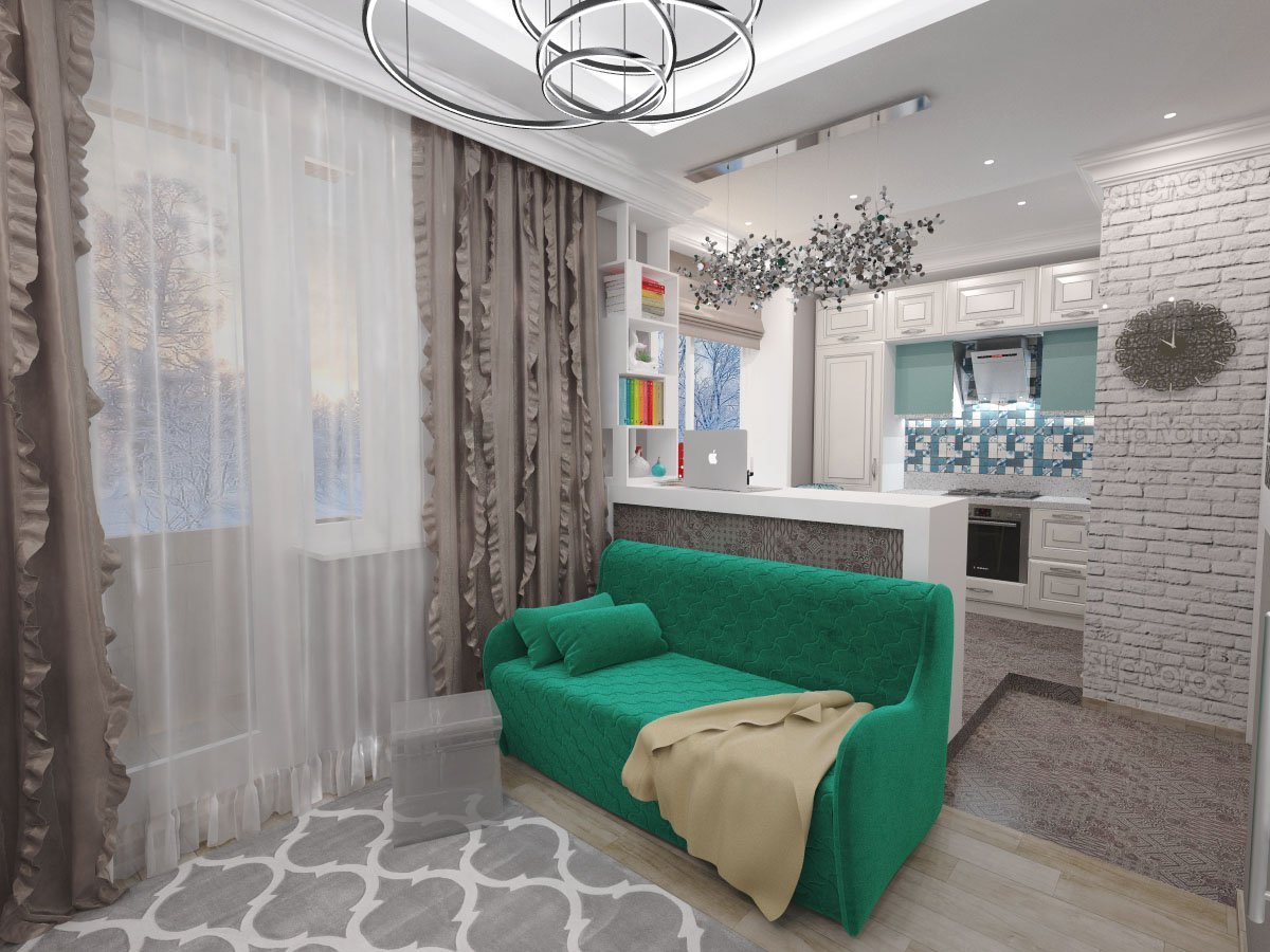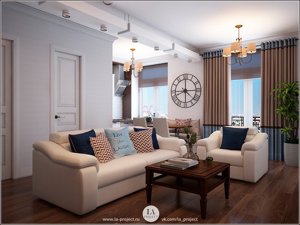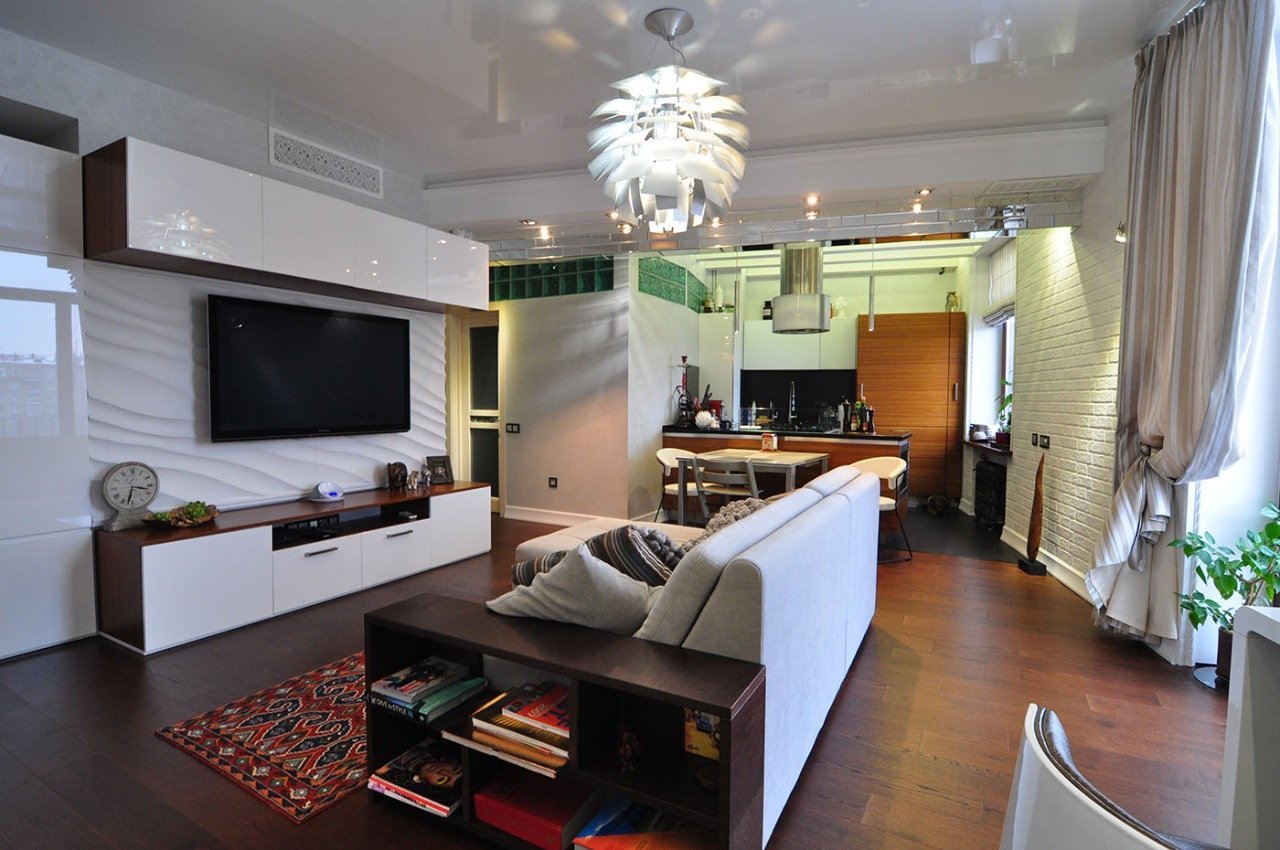 Совмещенная кухня и гостинная в сталинке