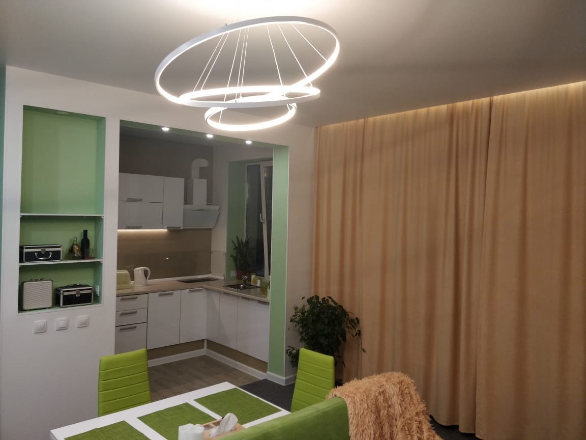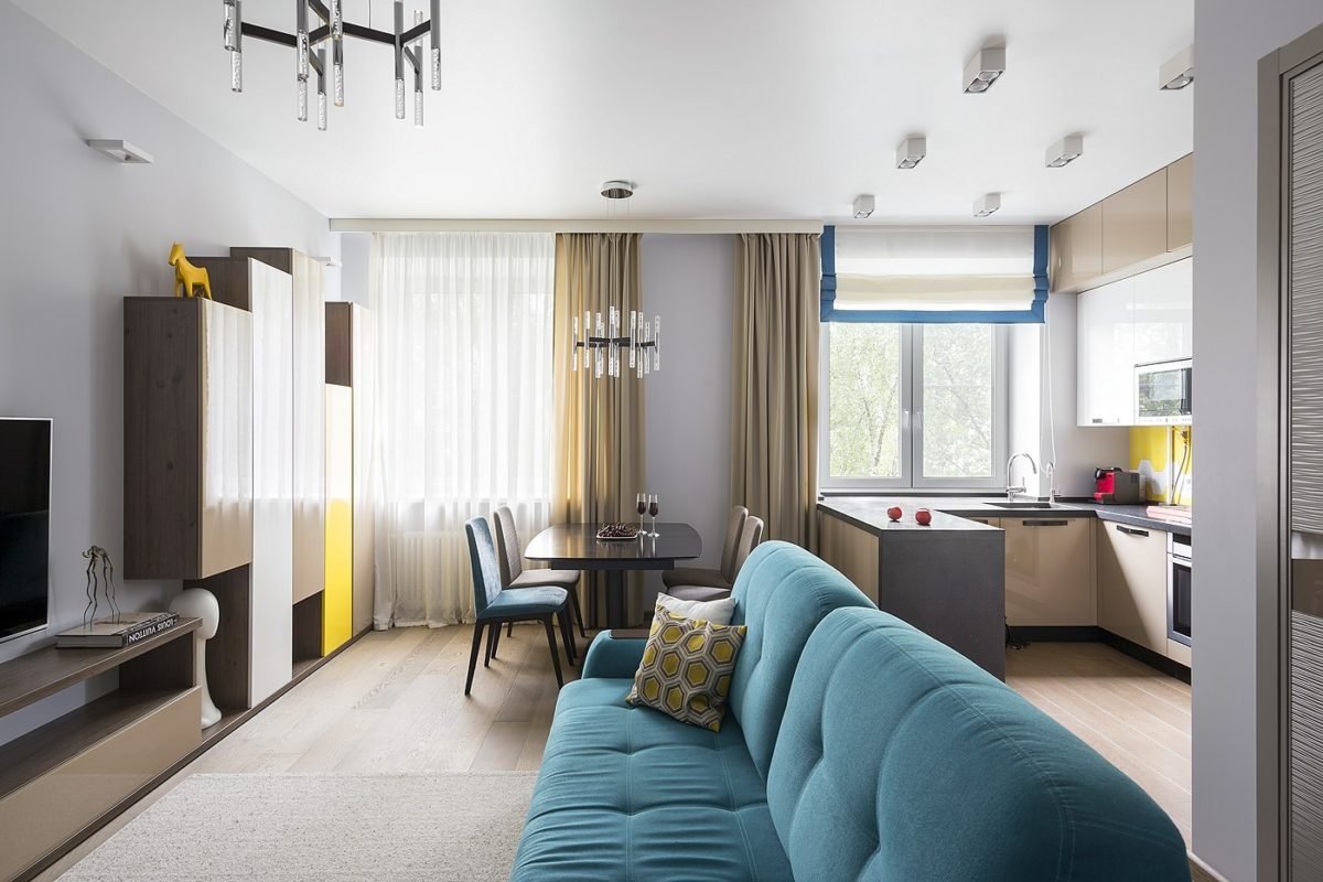 Объединенная кухня-гостиная в сталинке