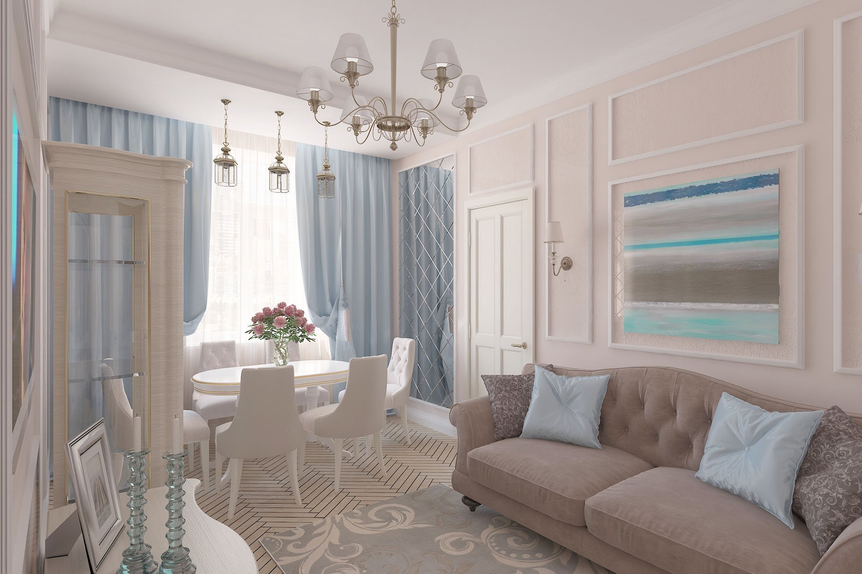 Интерьер кухни в пастельных тонах