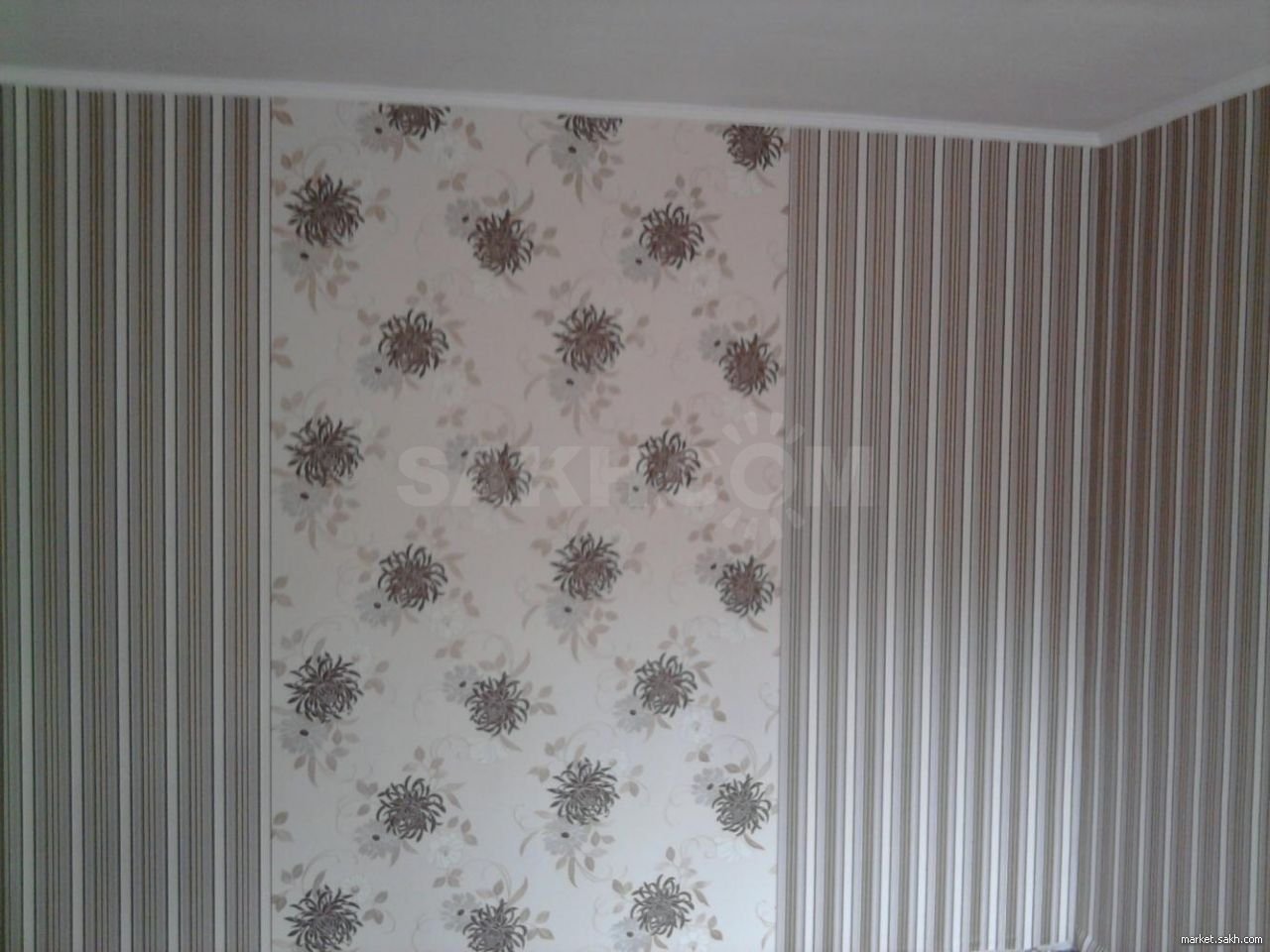 Поклейка двух видов обоев в комнате
