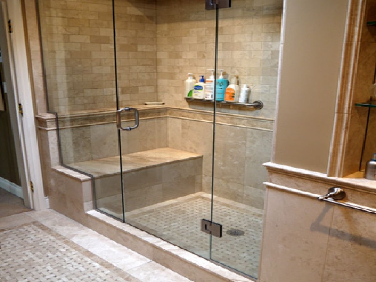 Душевая кабина с поддоном из плитки