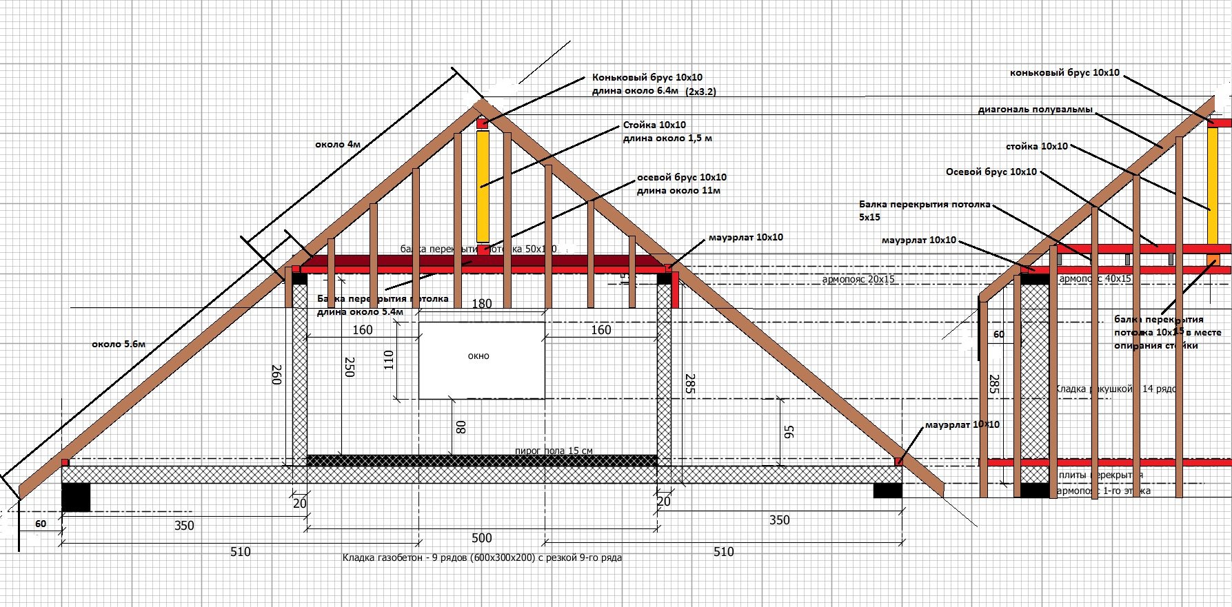 Крыша двухскатная ломаная. Стропильная система ломаная