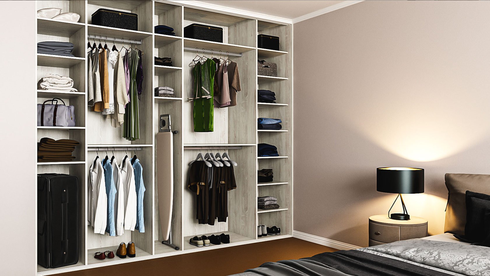 Наполнение гардеробного шкафа в спальне