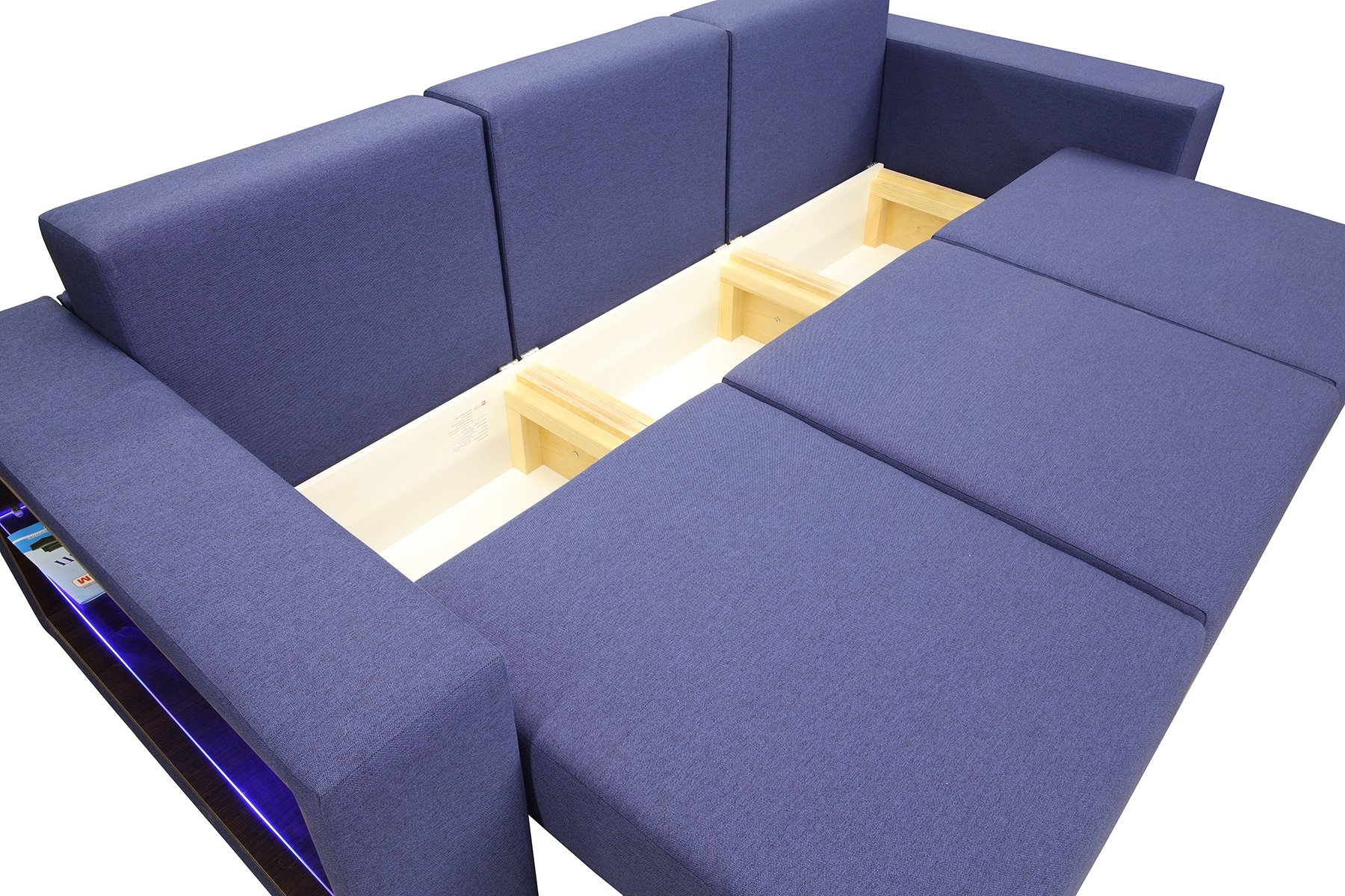 Квадро-2 угловой диван с баром, с пуфиками и столиком в подлокотниках