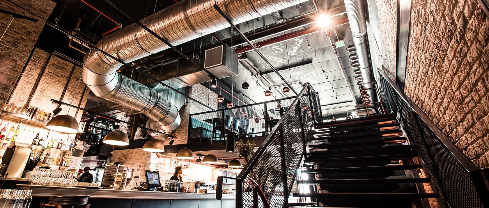 Потолок в кафе в стиле лофт