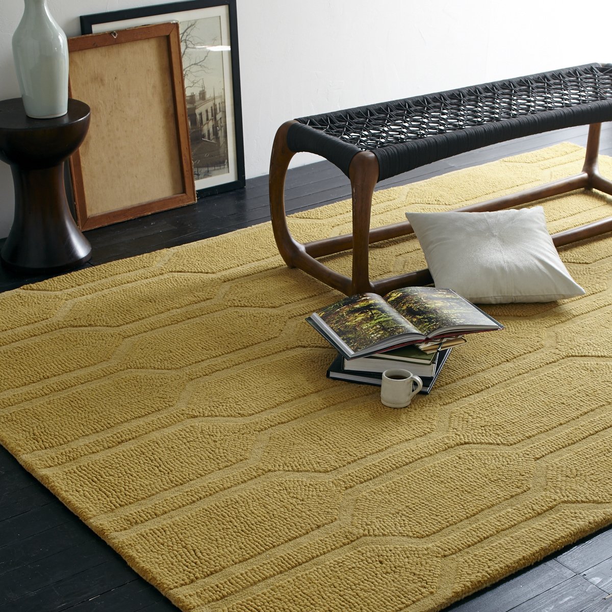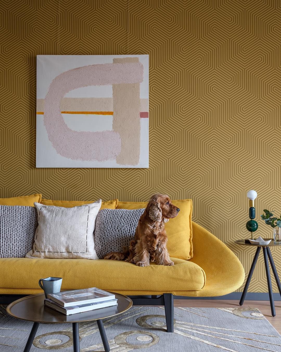 Горчичный ковер в интерьере