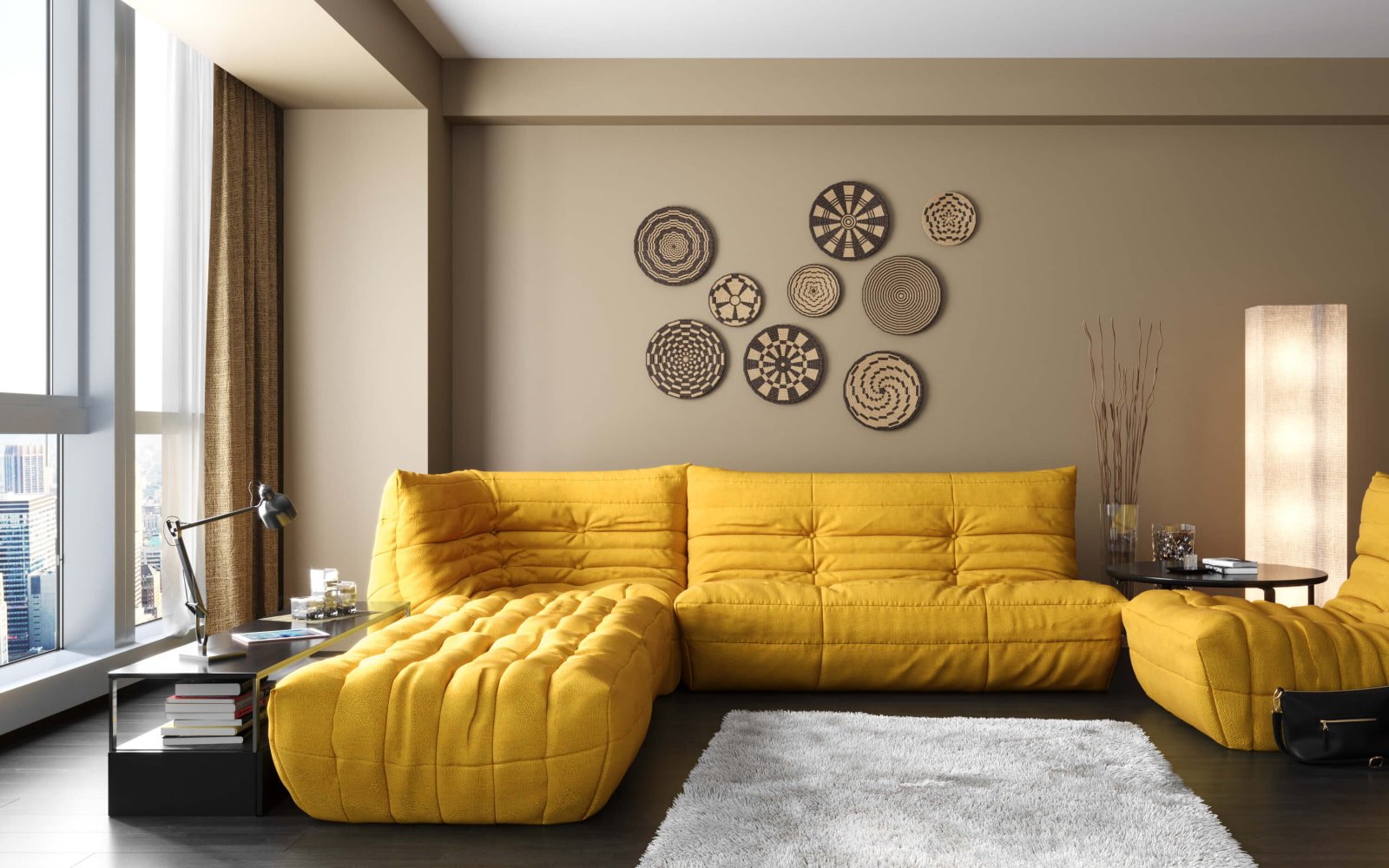 Желтый ковер в интерьере