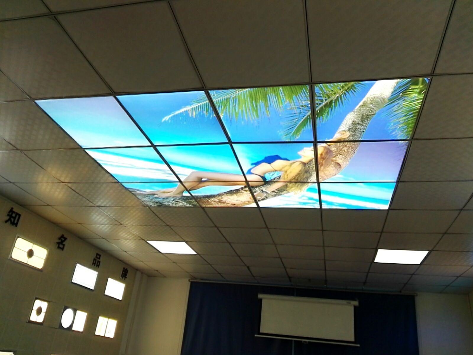 Лайтбокс на потолке в интерьере