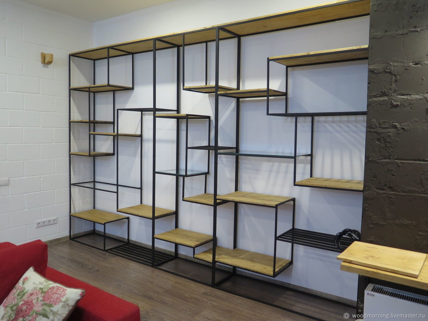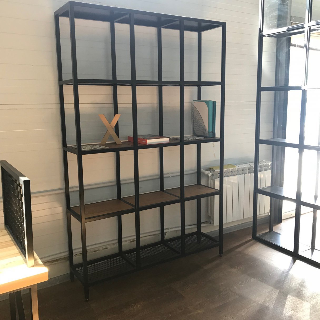 Стеллаж перегородка из металла и дерева