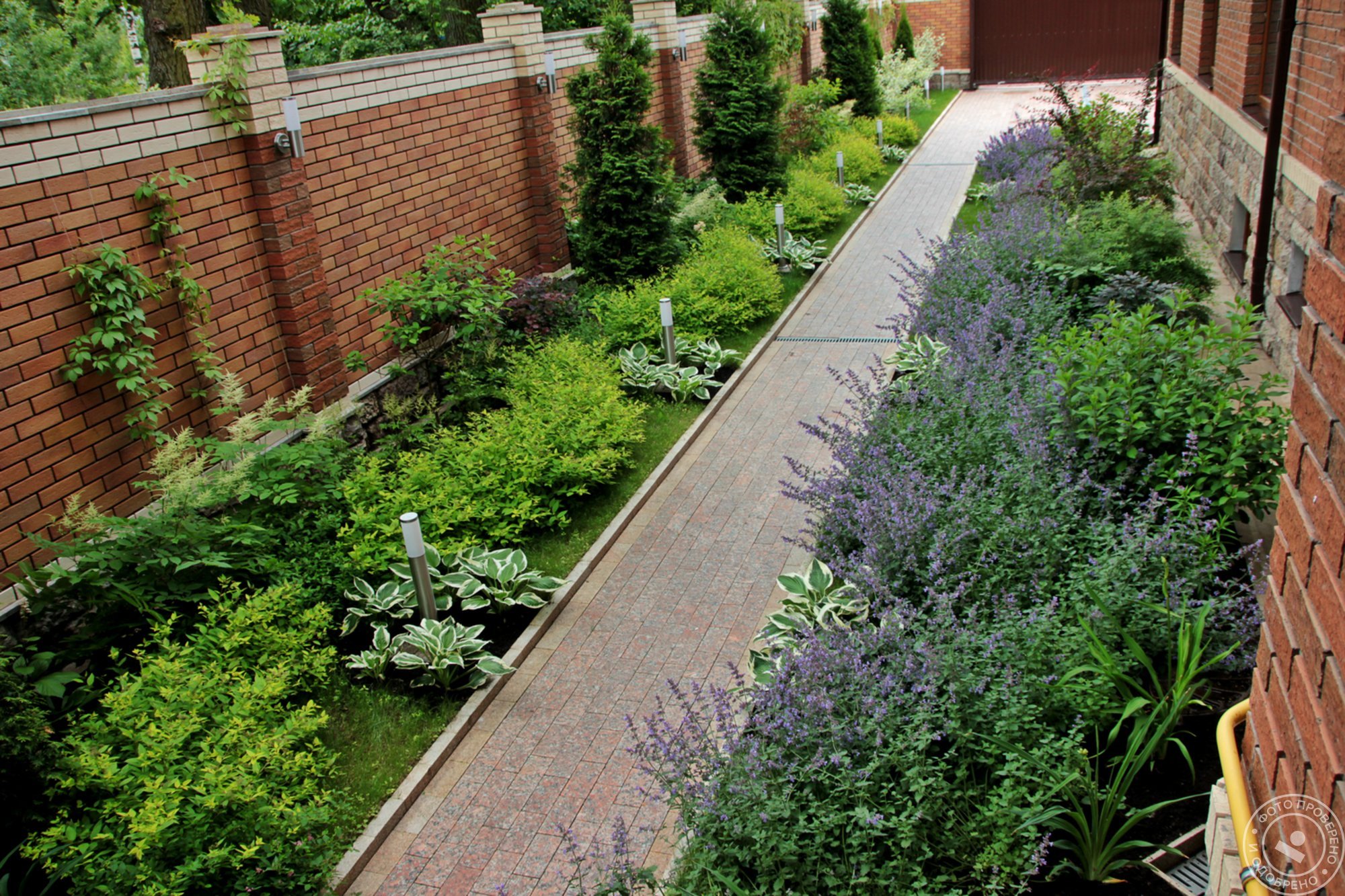 Патио хвойники у забора