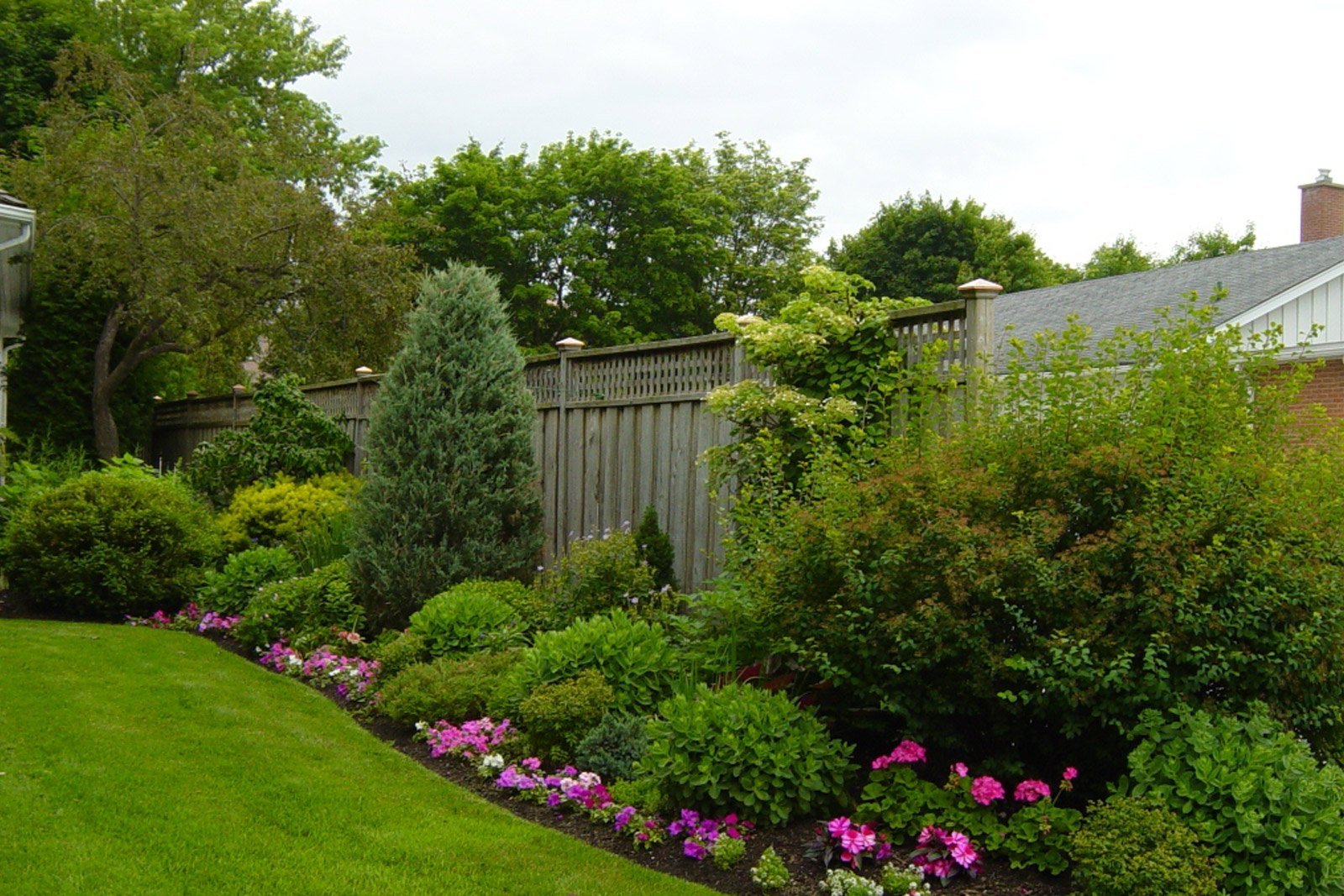Угловая клумба у забора
