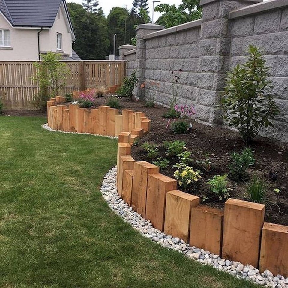 Высокая клумба вдоль забора