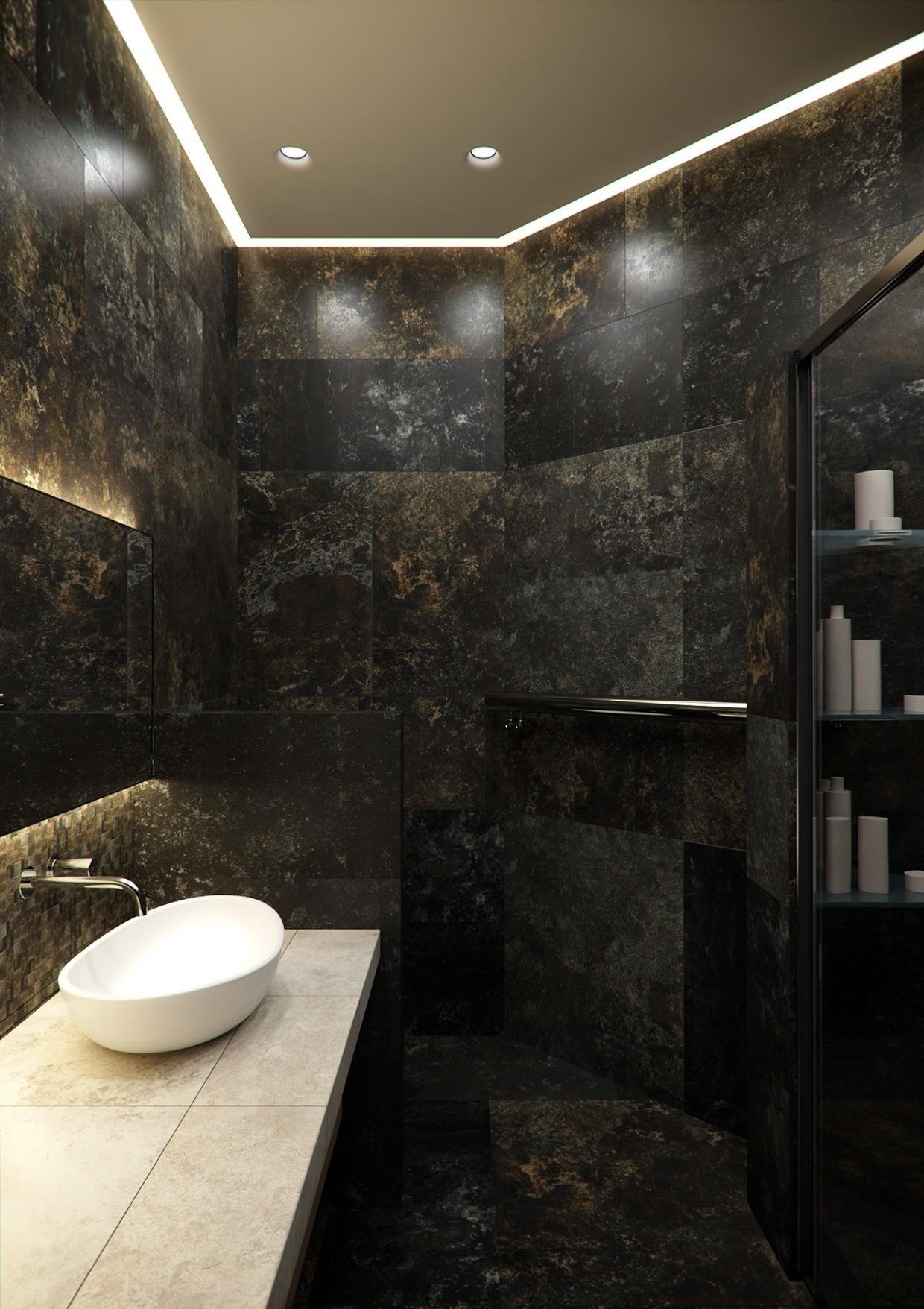 Черный НАТЯЖНОЙПОТОЛКИ В ванной