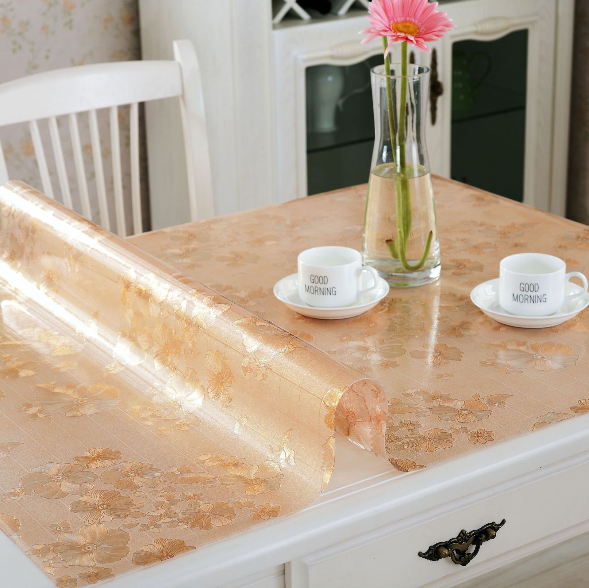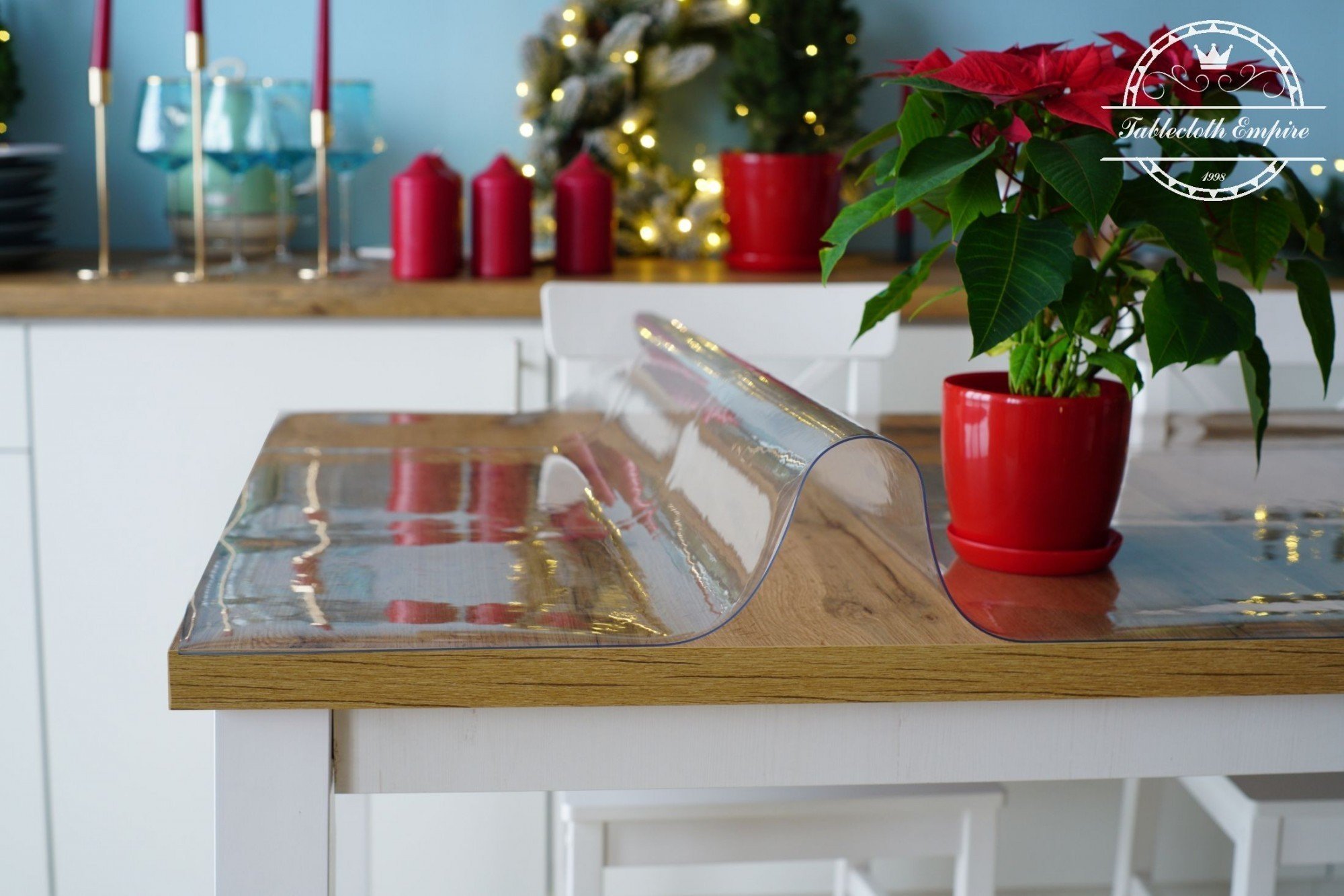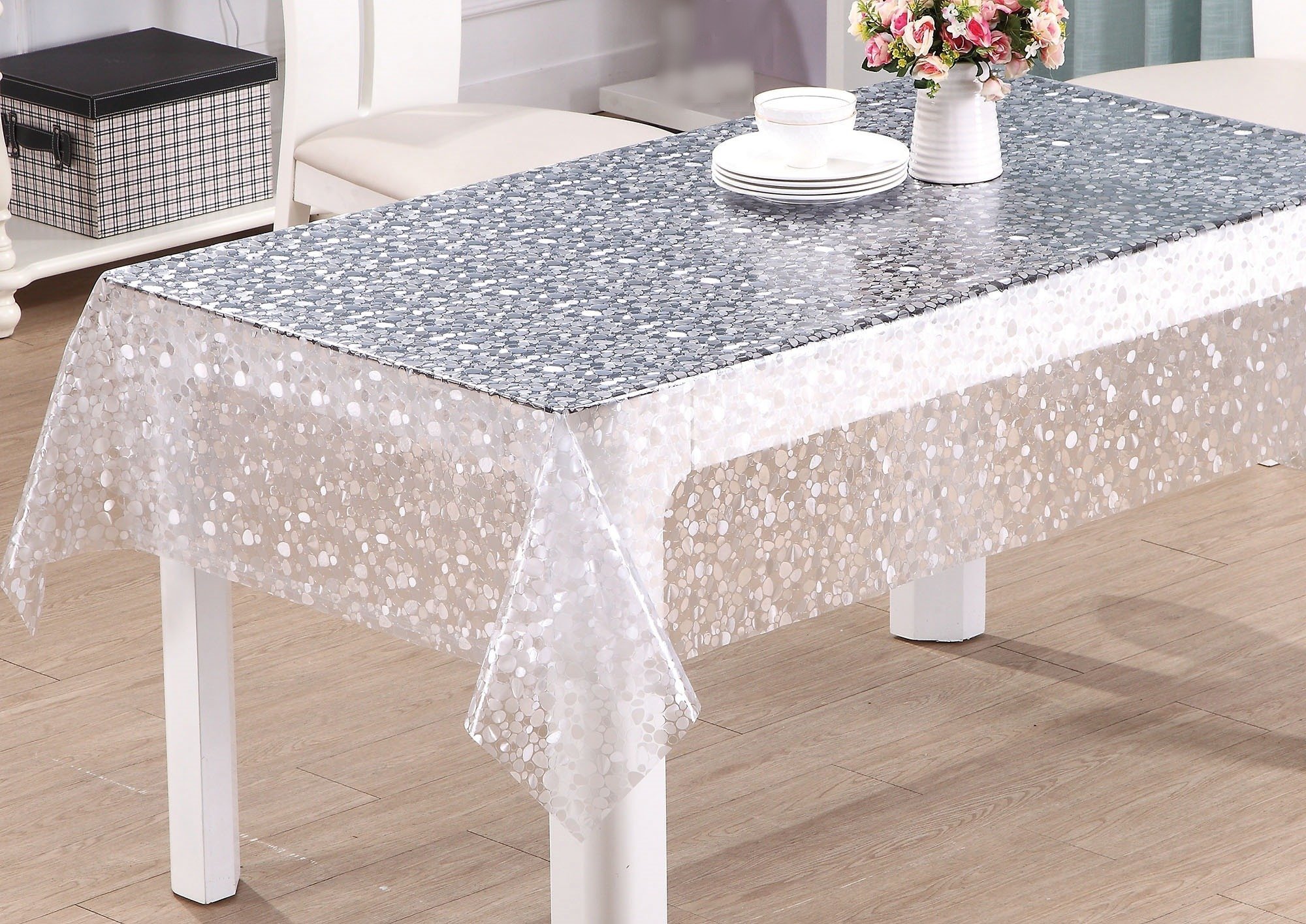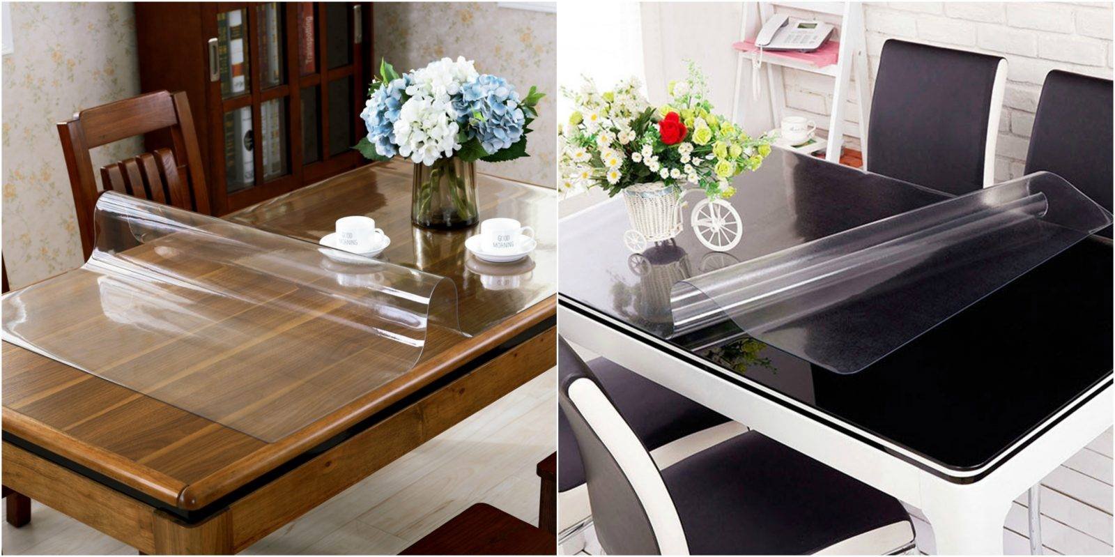 Прозрачная скатерть на кухне