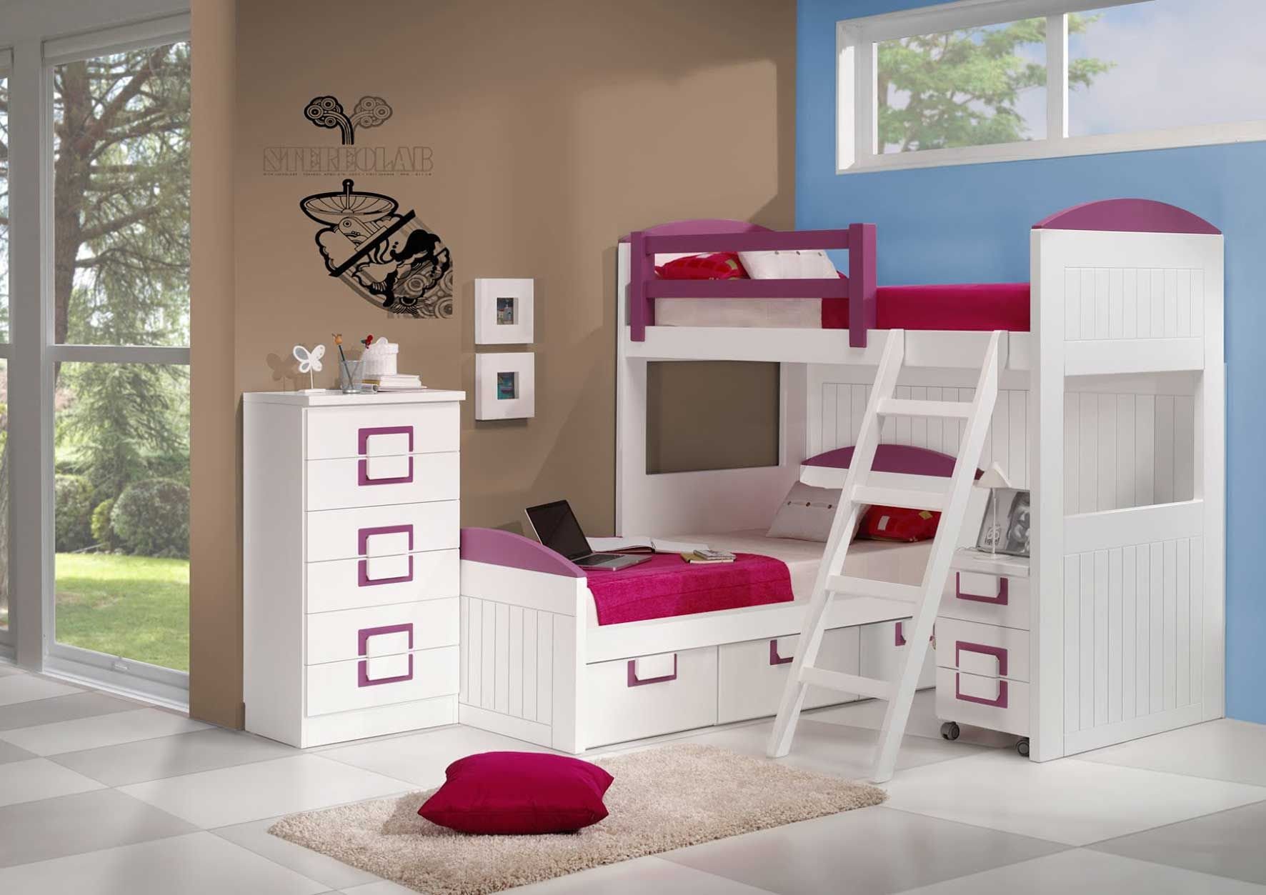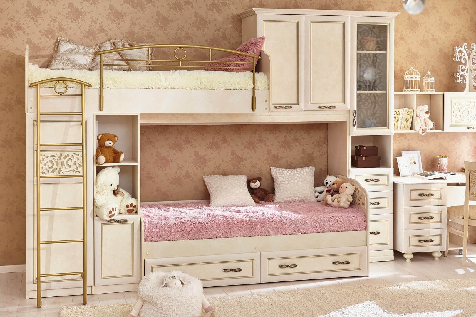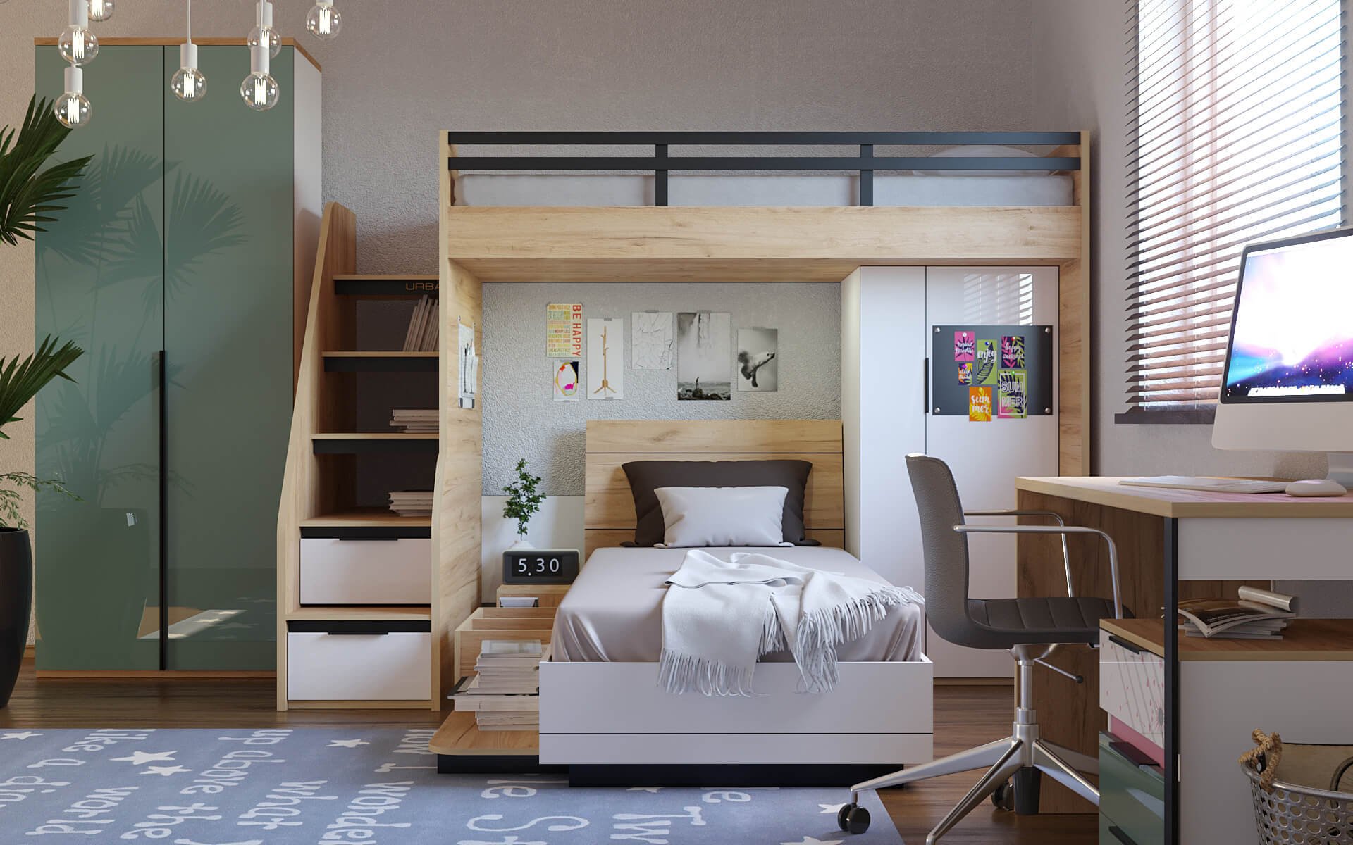 Детская спальня с двухъярусной кроватью и угловым шкафом