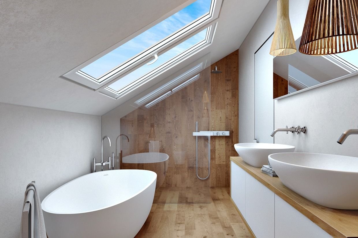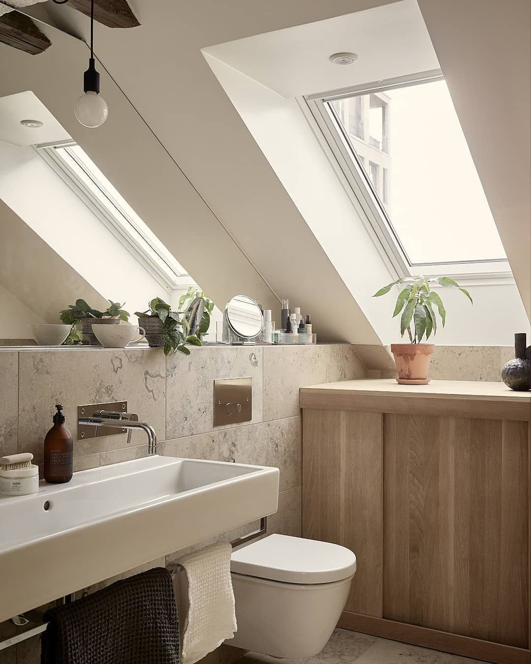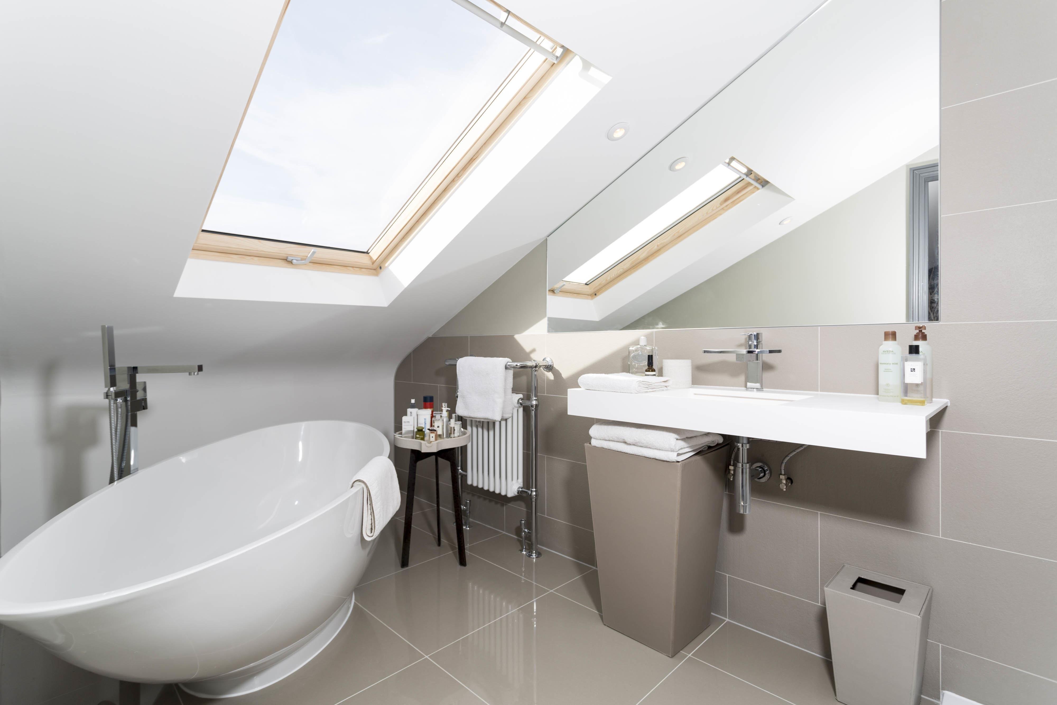 Ванная комната с мансардным окном