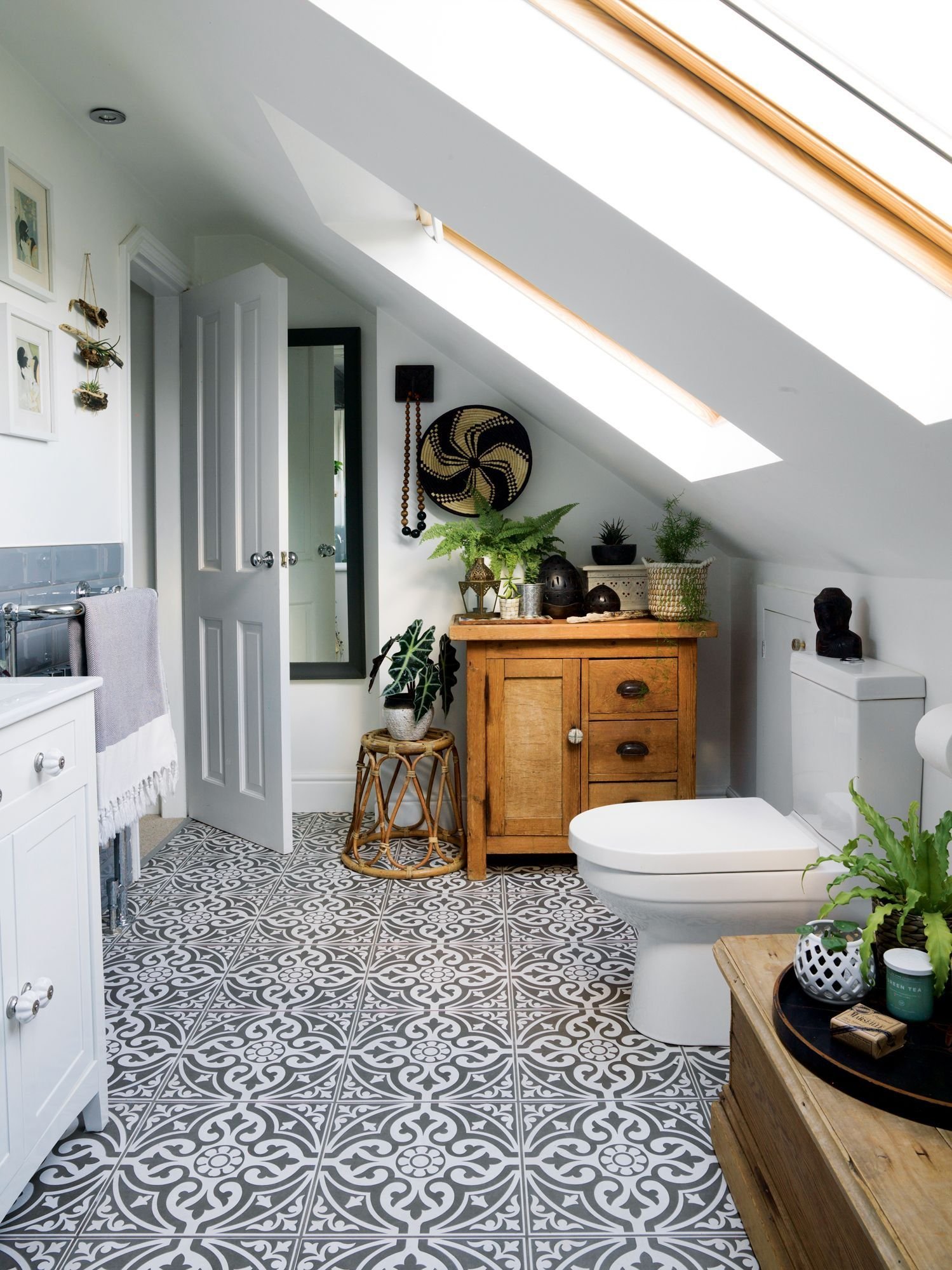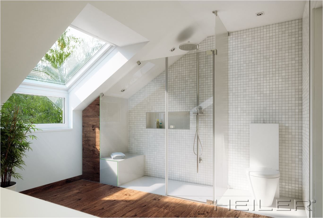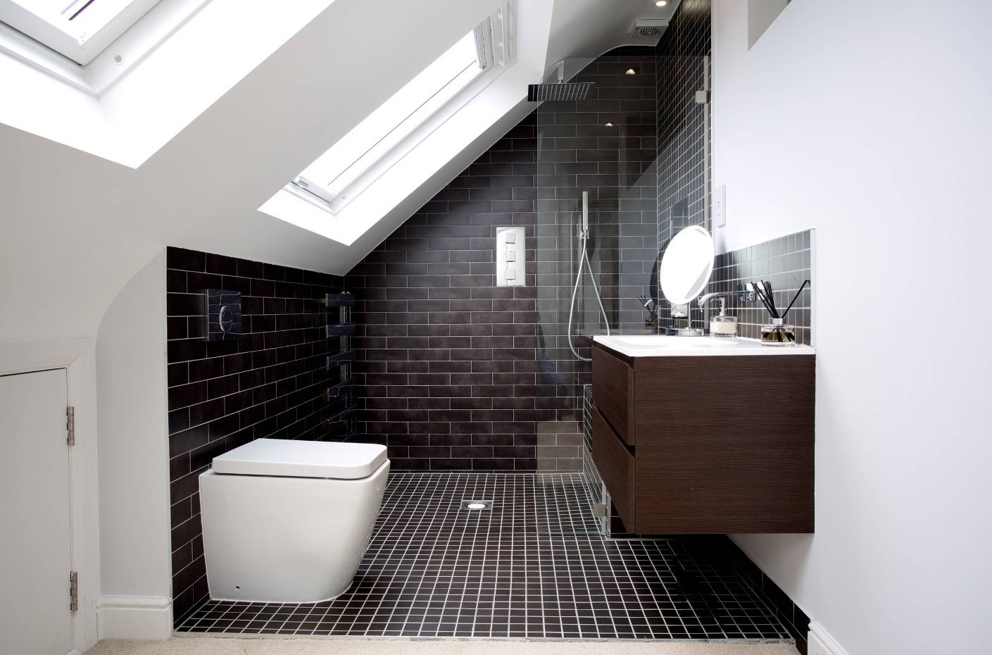 Ванная комната с мансардным окном