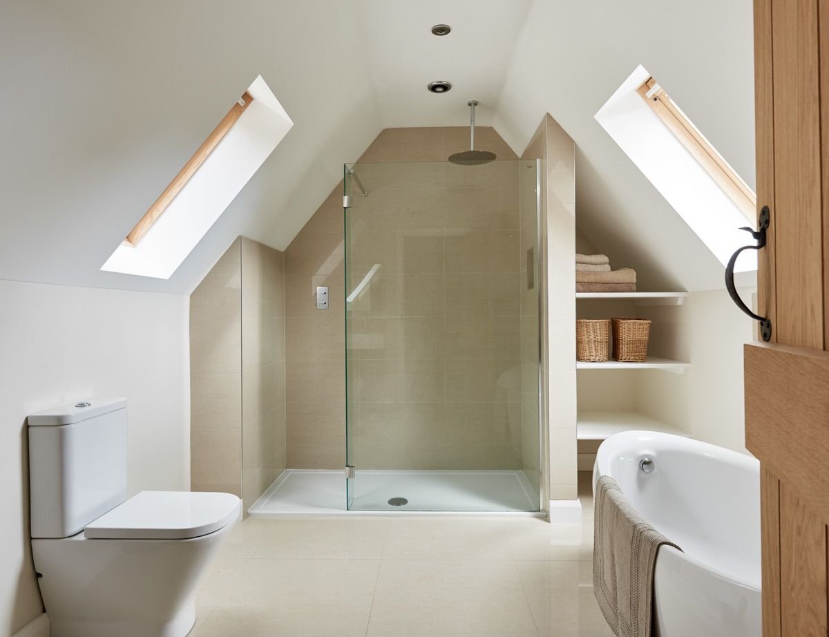 Ванная в мансарде со скошенным потолком
