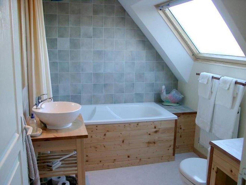 Ванная под мансардной крышей