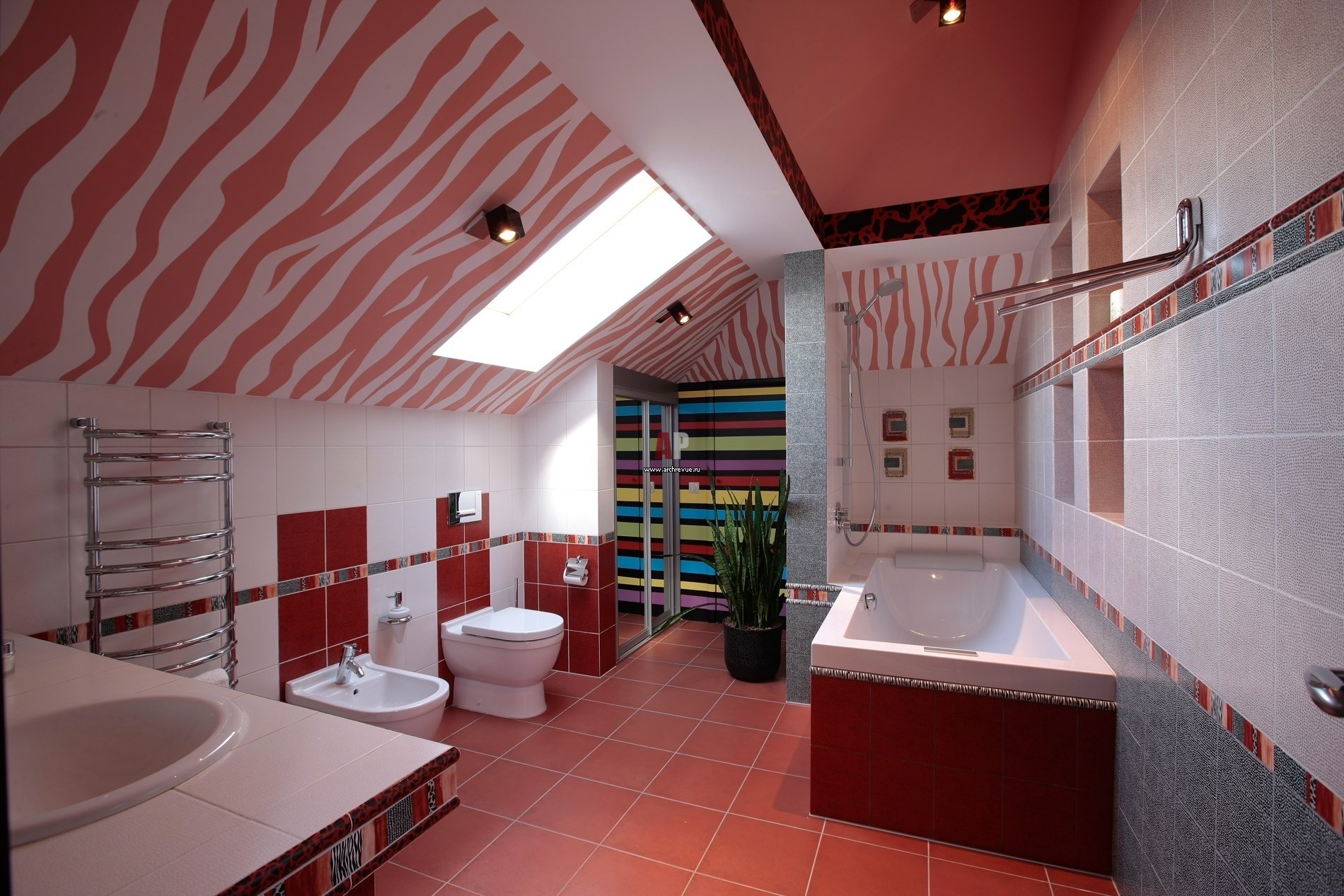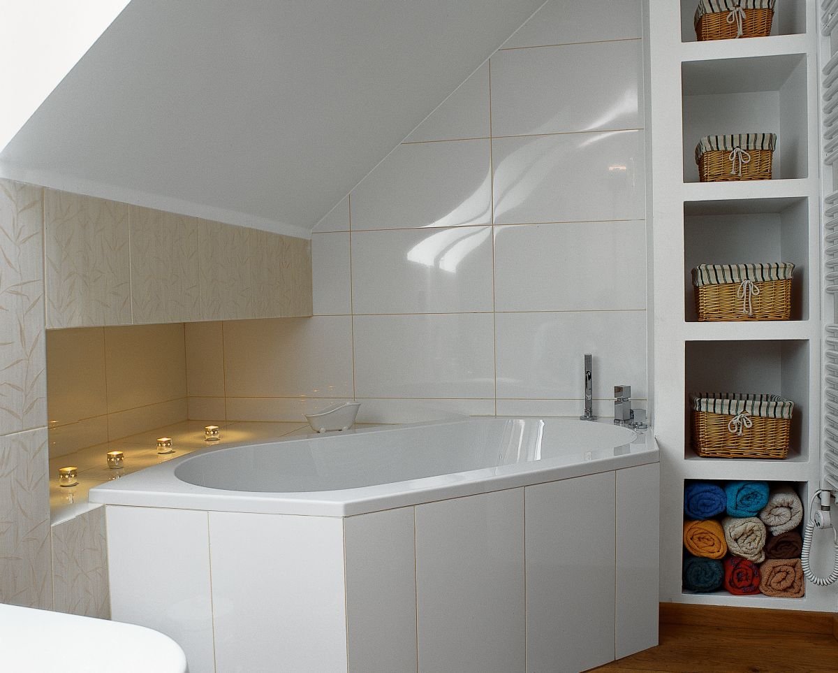Плитка в ванной с наклонным потолком