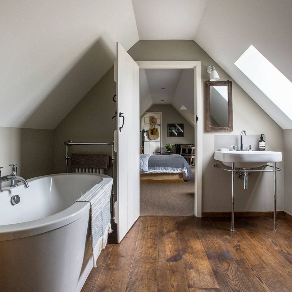 Ванна на мансарде в спальне