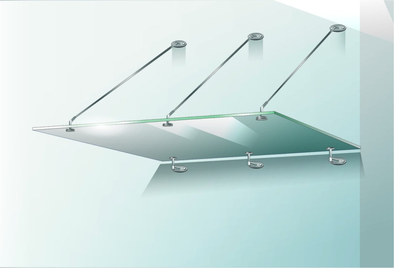 Стеклянный козырек на тягах YP-3 размер 1500х2000 мм
