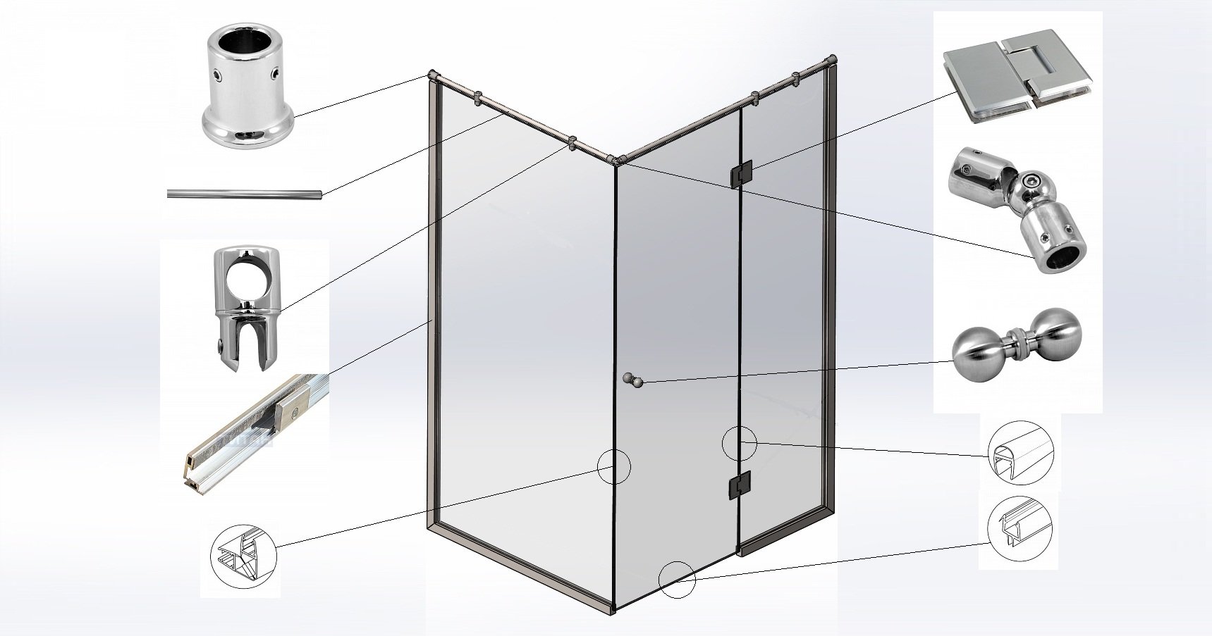 Крепления стеклянных дверок душевой кабины
