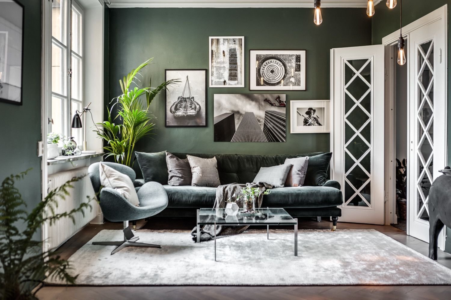 Зеленая гостиная в скандинавском стиле