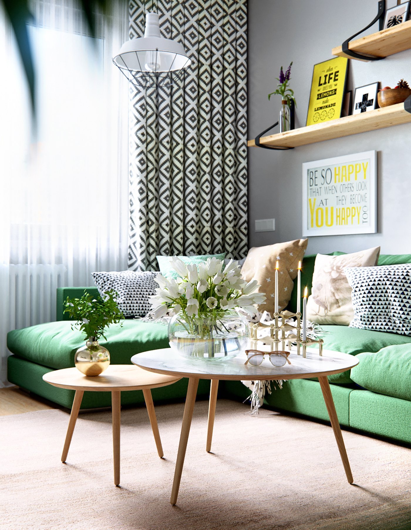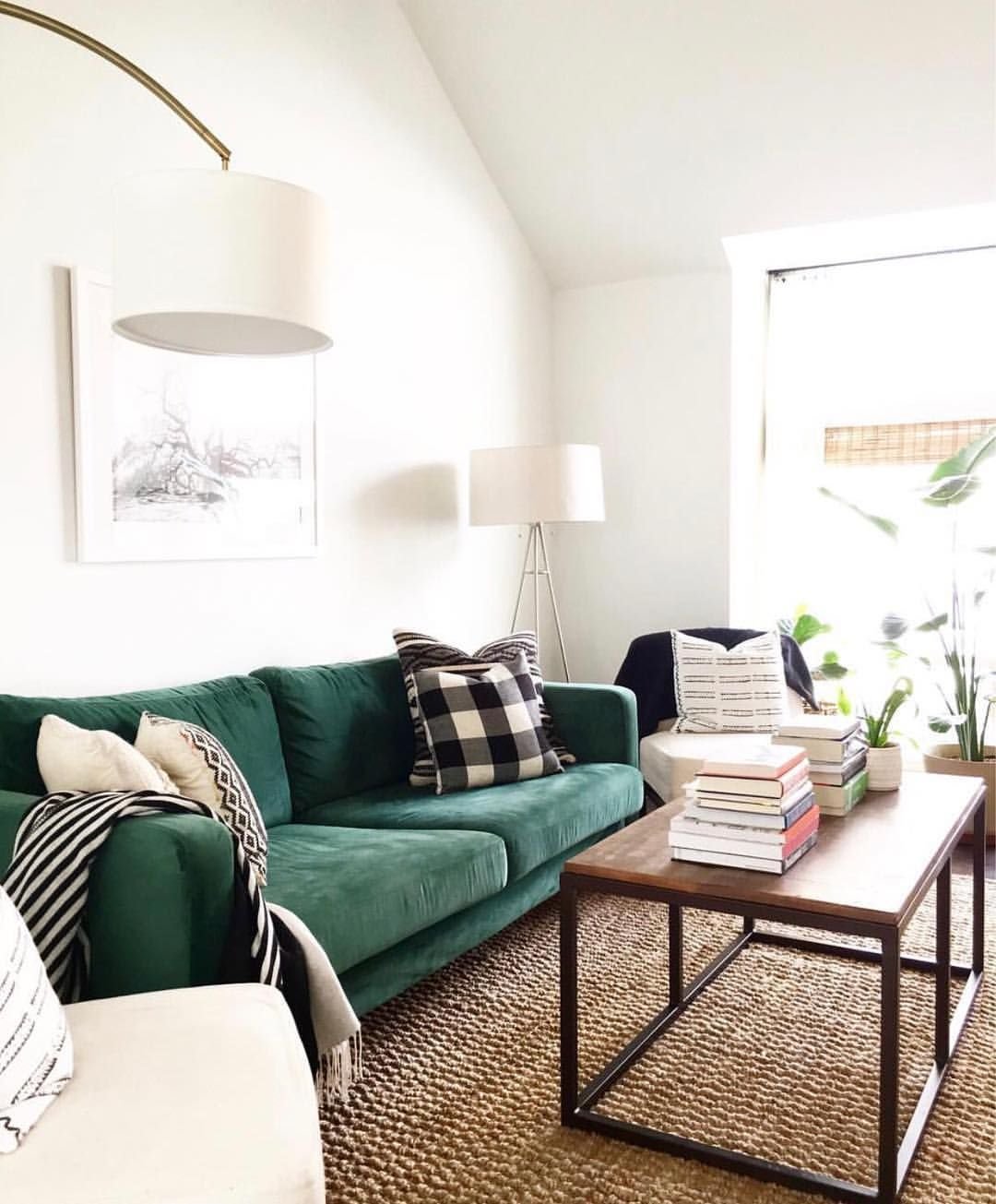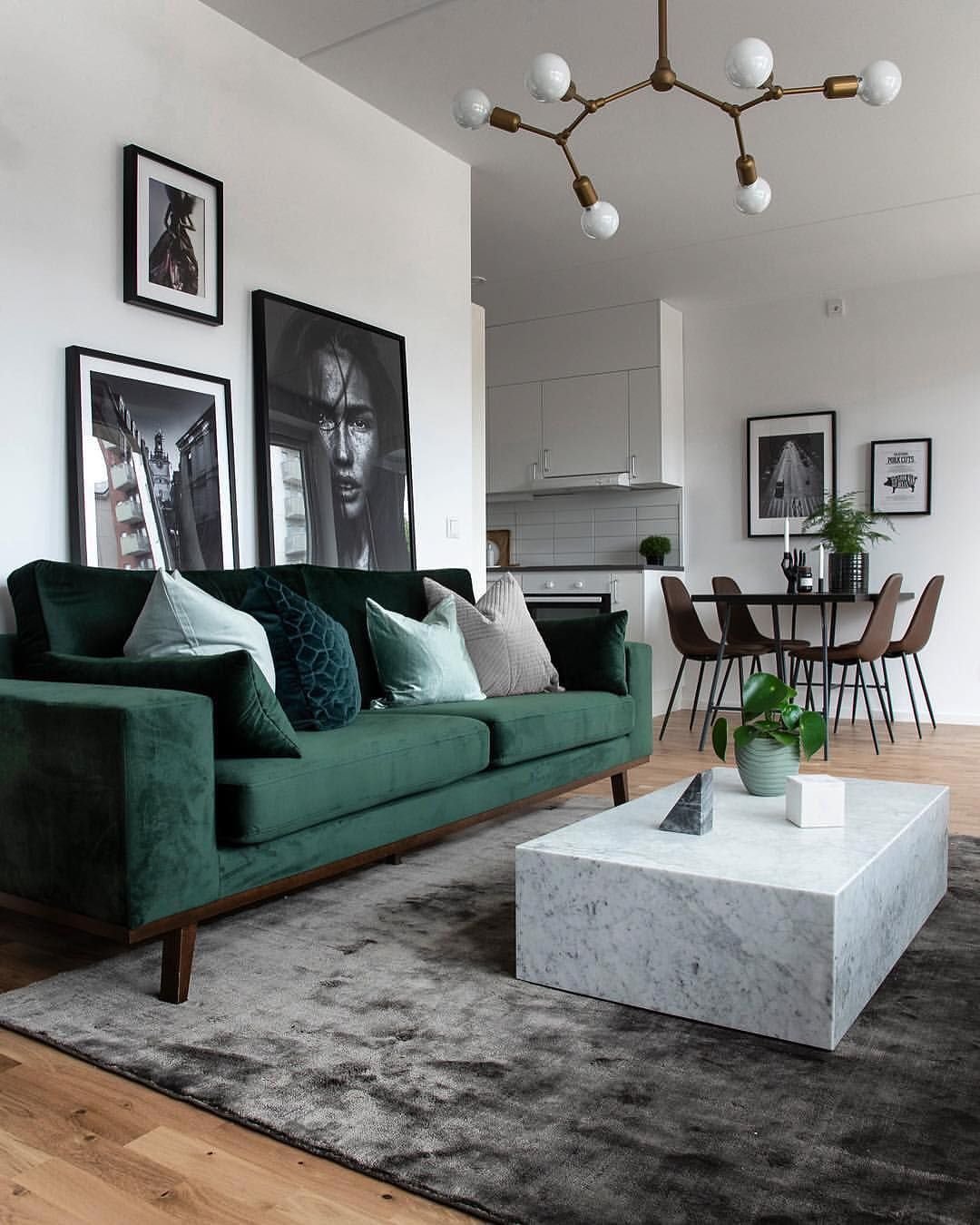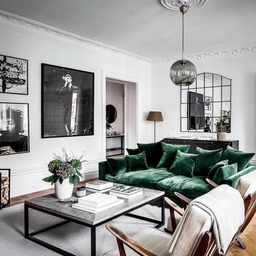 Скандинавский стиль с зеленым диваном