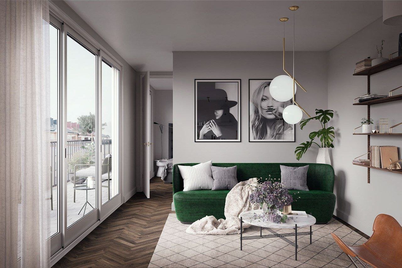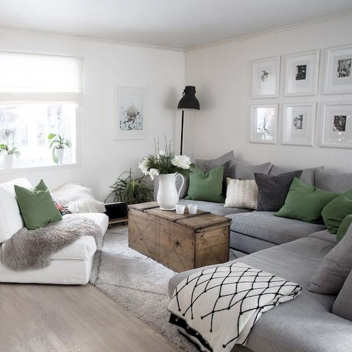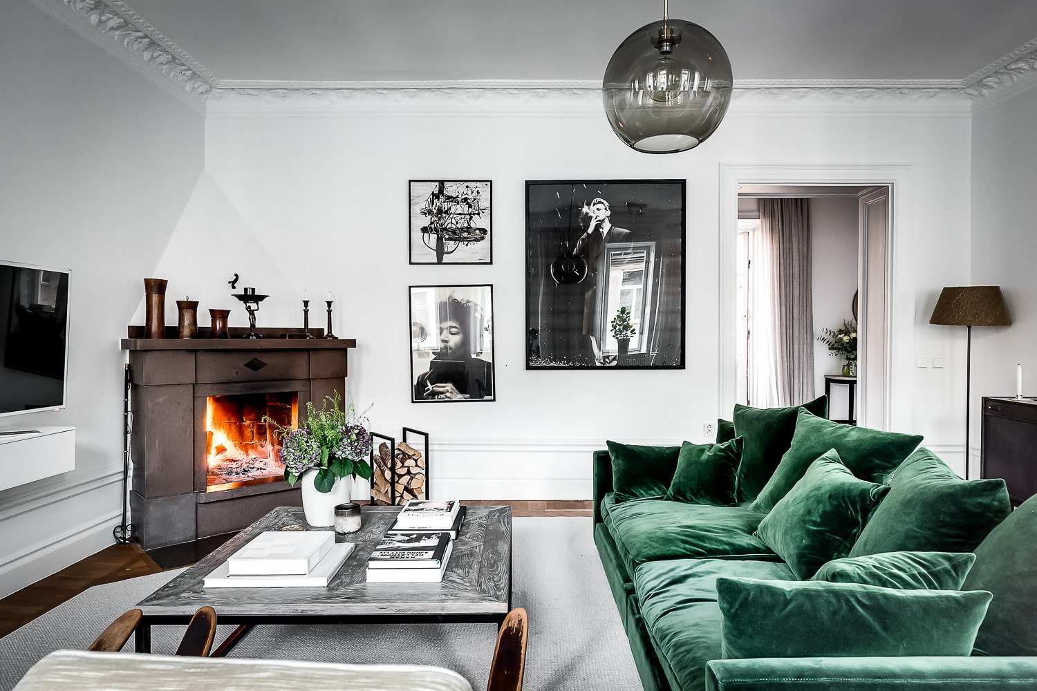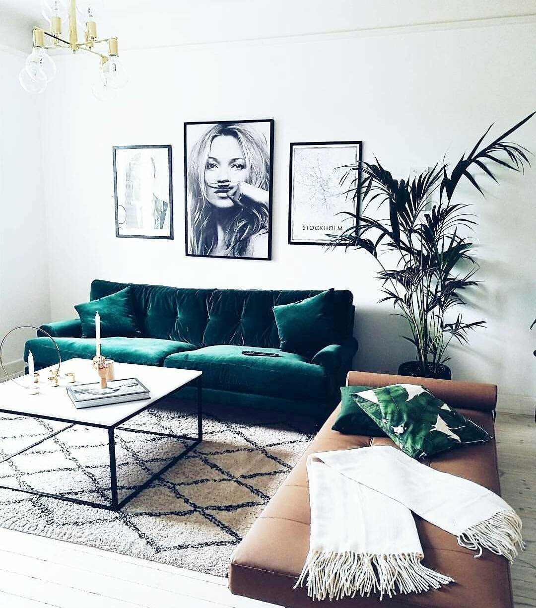 Скандинавский стиль с зеленым диваном