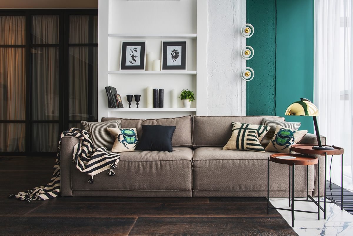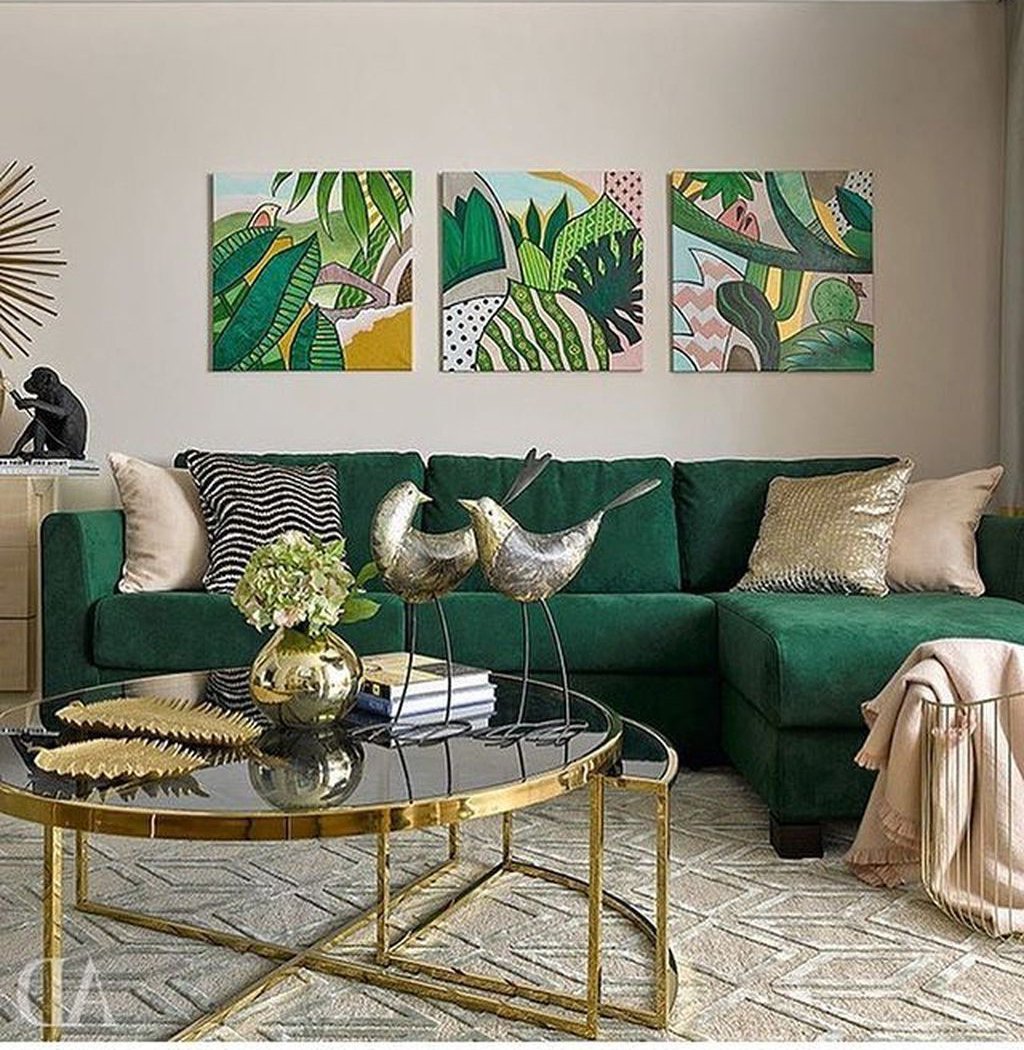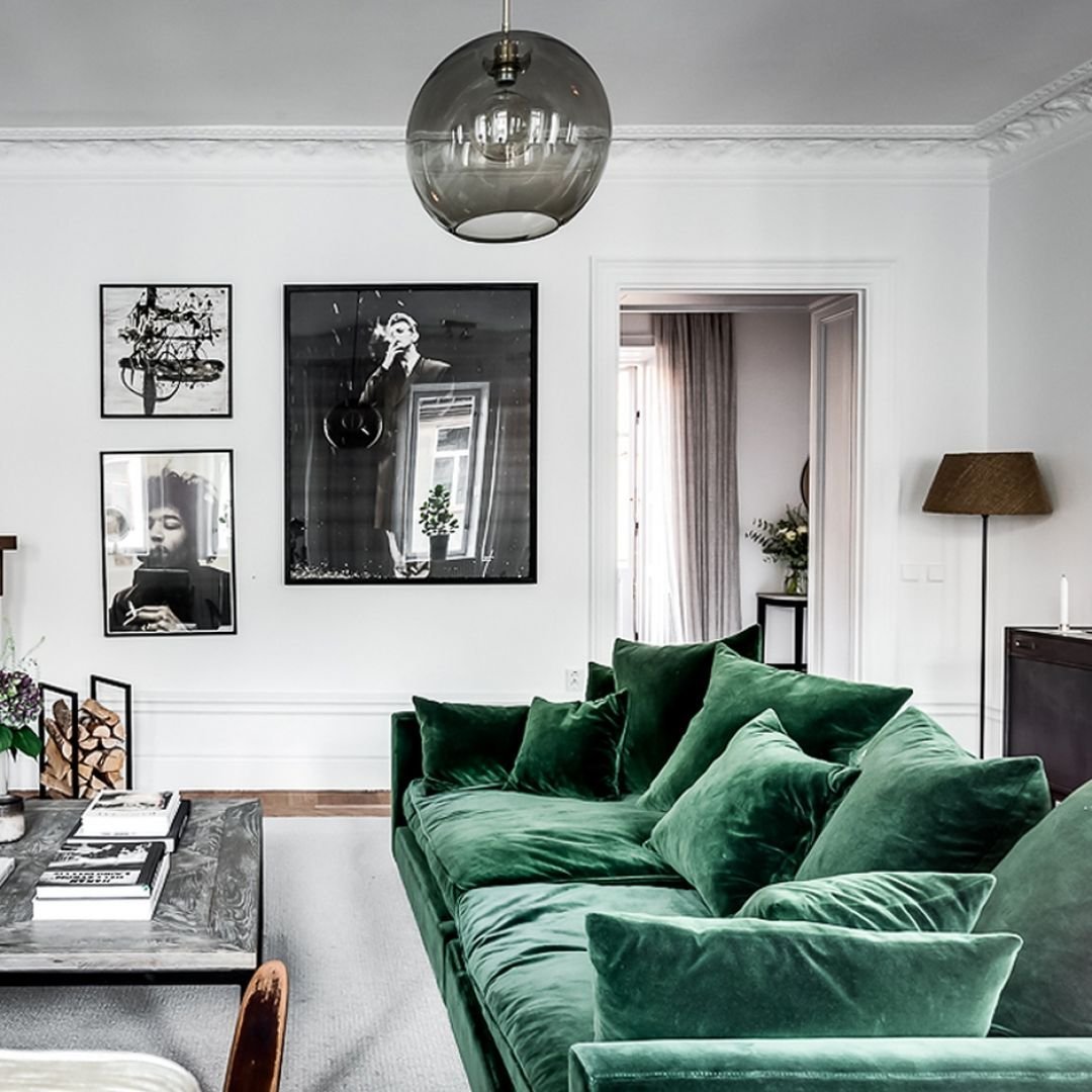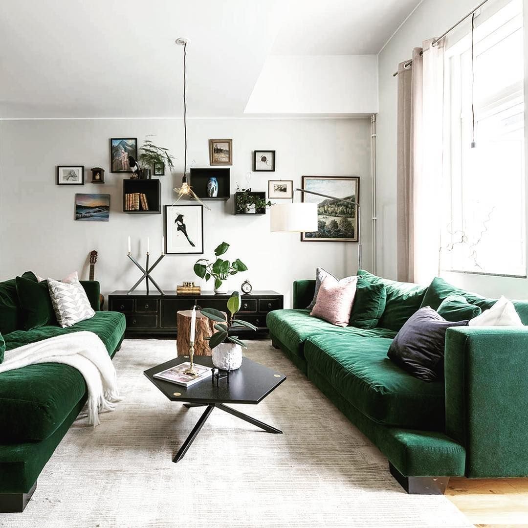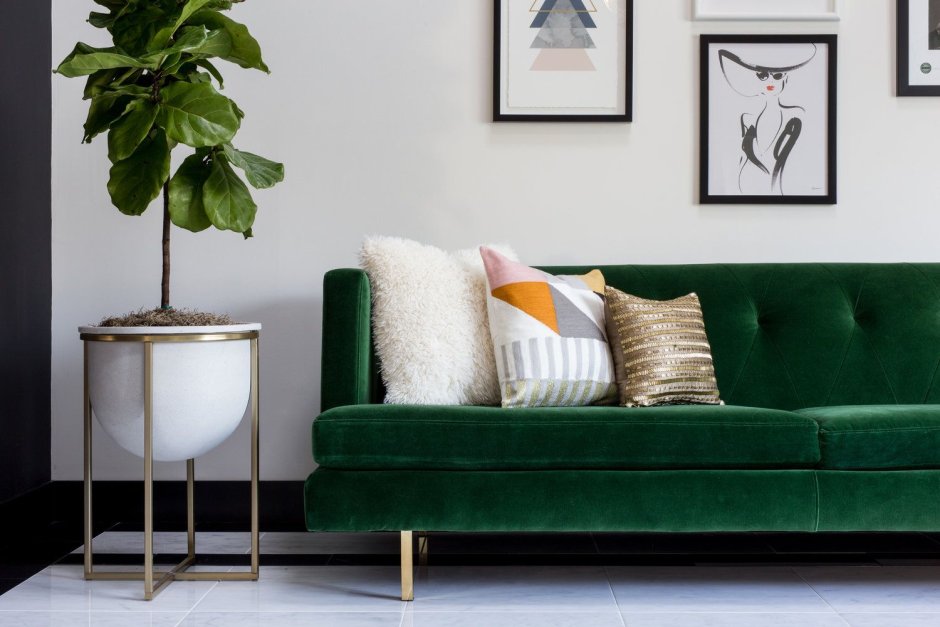 Изумрудный диван в интерьере