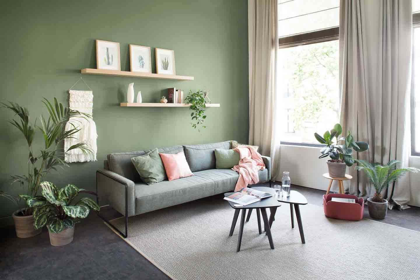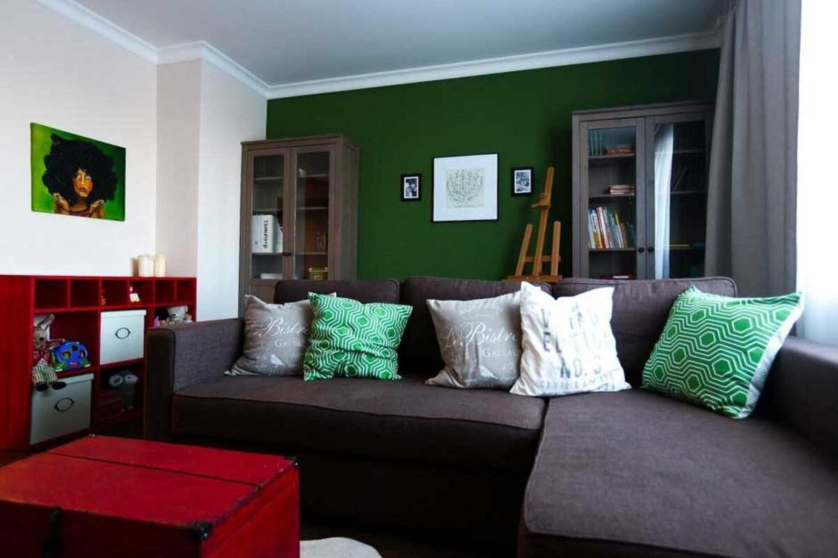 Зеленые стены в гостиной