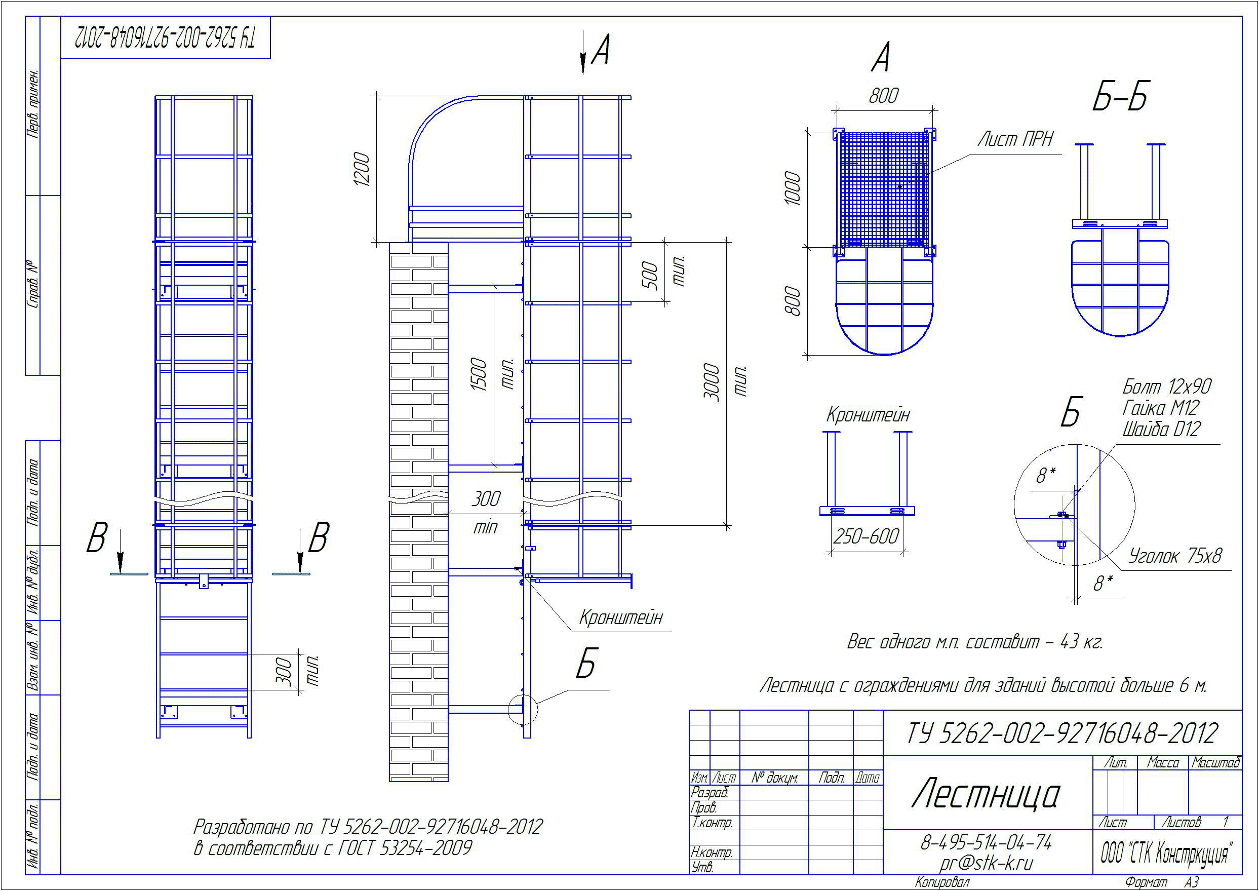 Пожарная лестница наружная чертеж ГОСТ Р 53254-2009