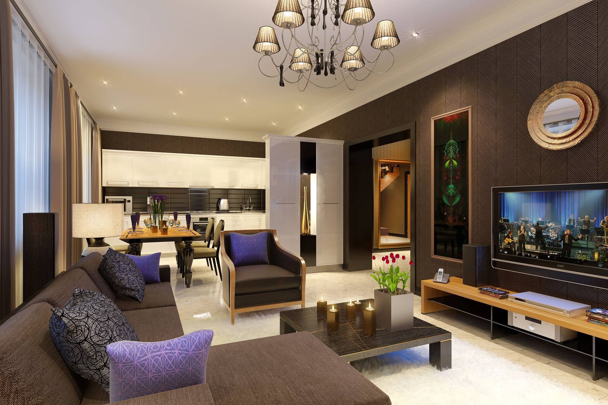 Кухня гостиная с большим телевизором