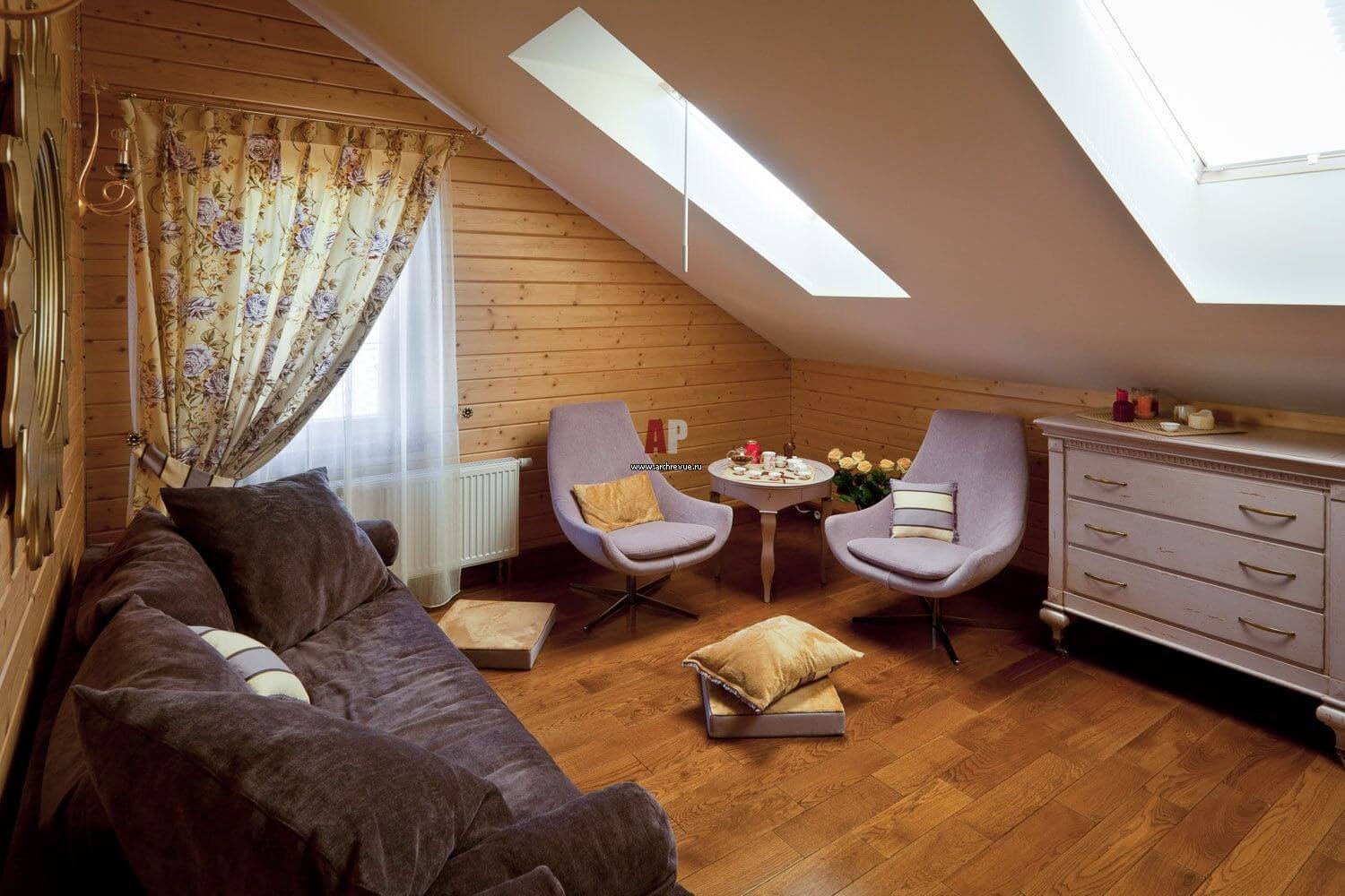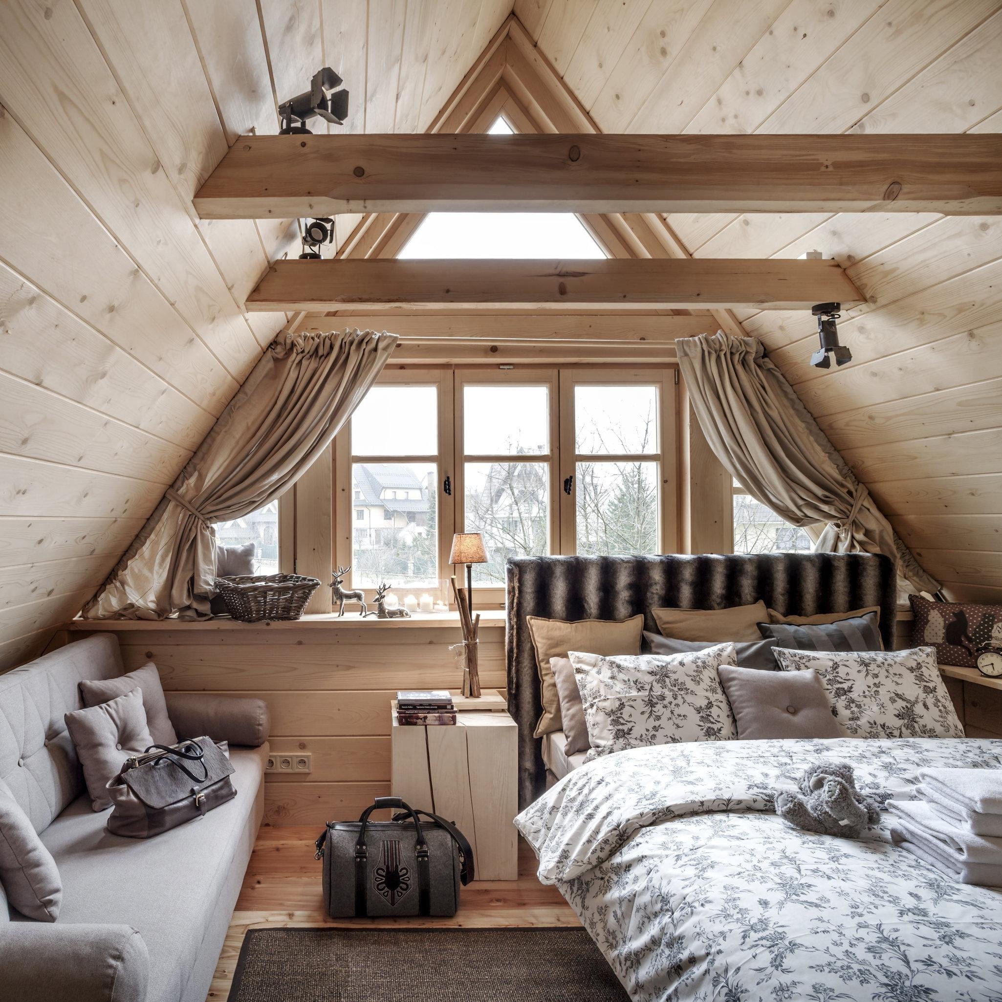 Интерьер деревянной мансарды