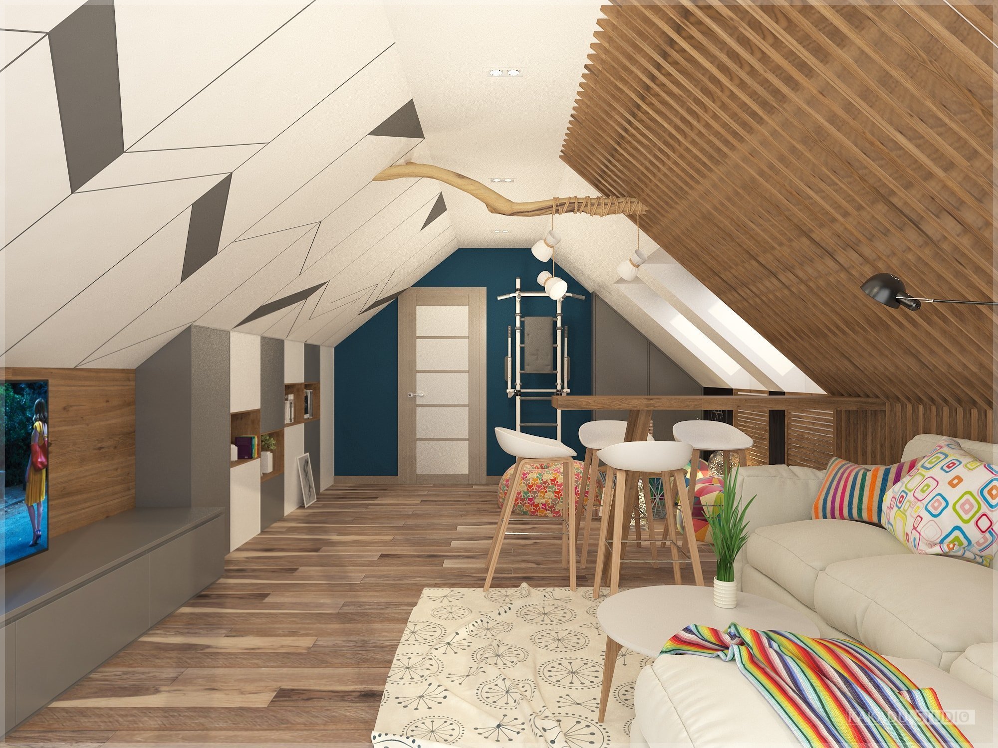 Интерьер мансарды с кукушками