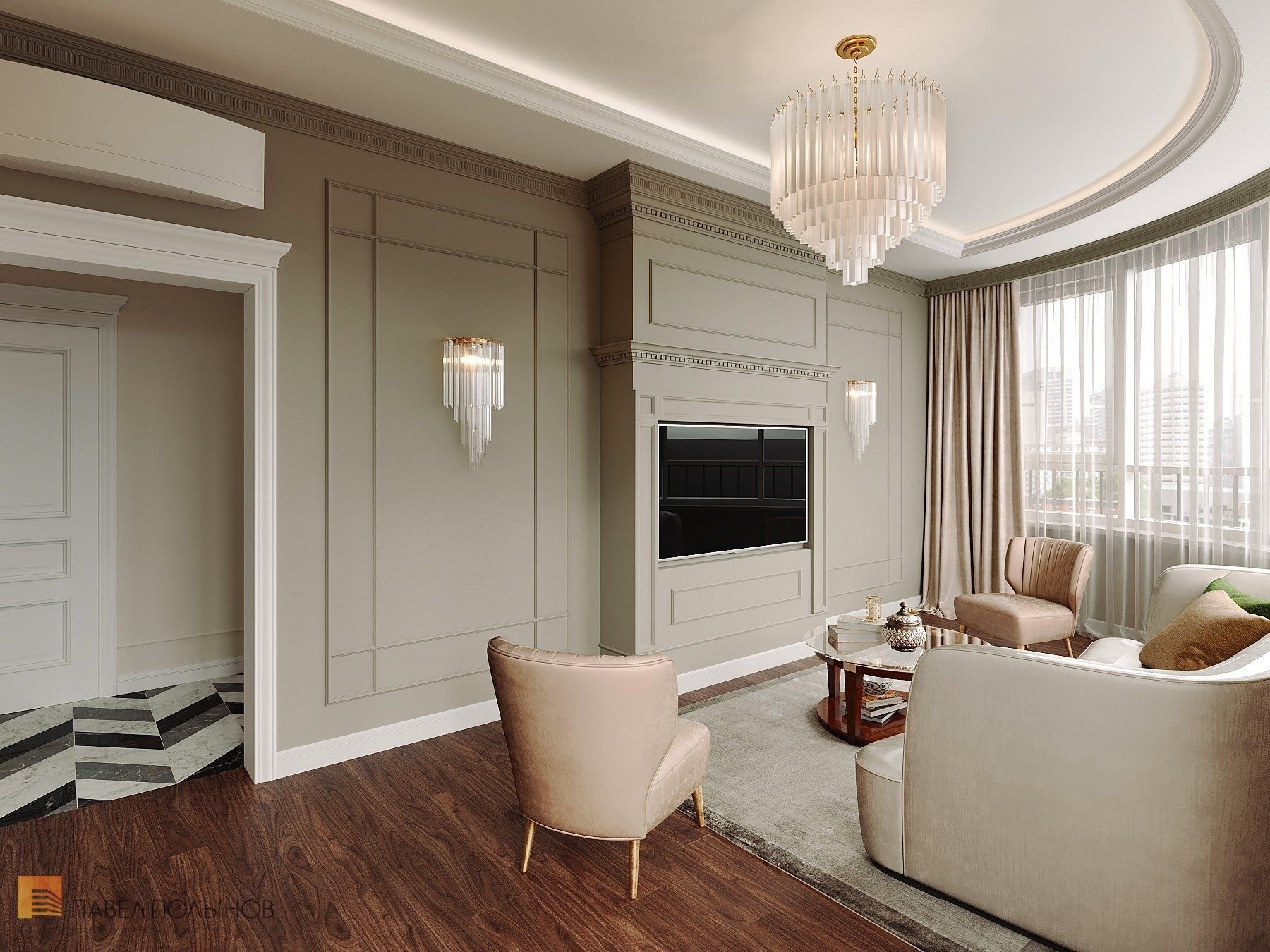 Молдинги для стен в интерьере гостиной Неоклассика