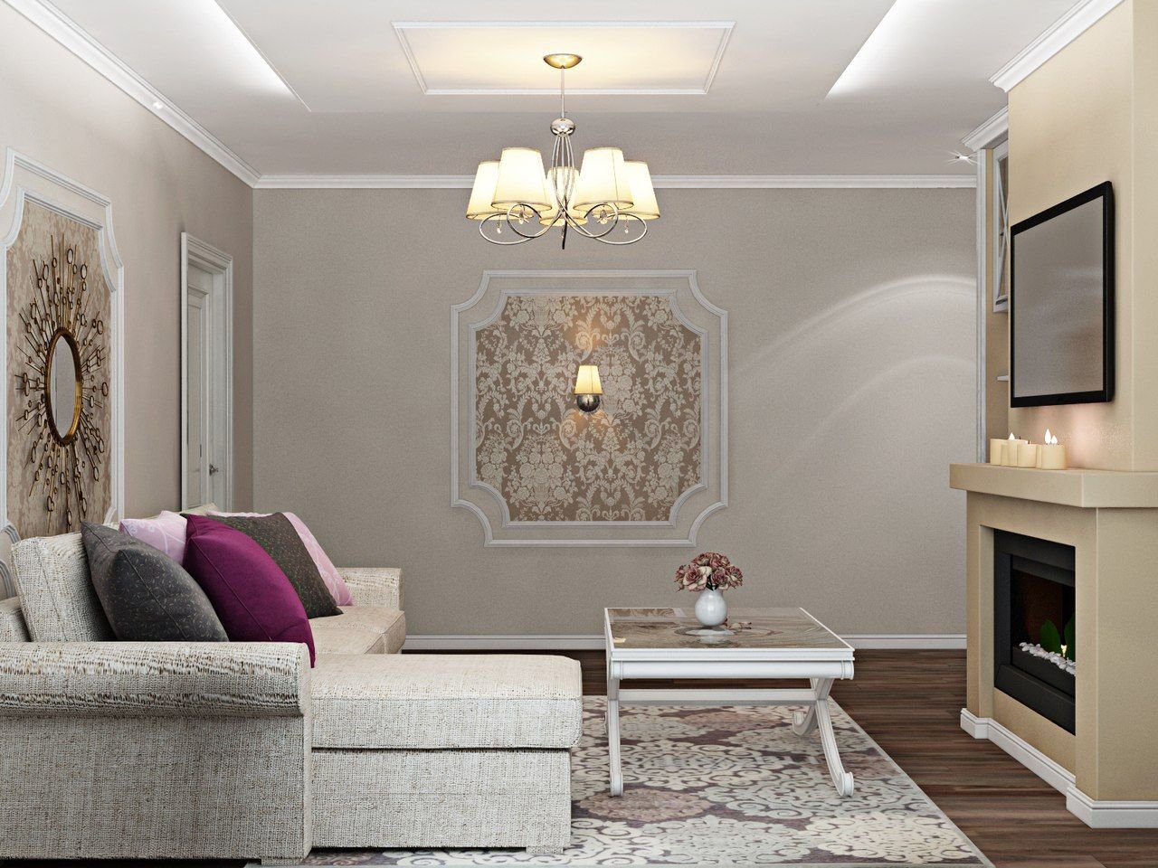 Стена с молдингами в гостиной