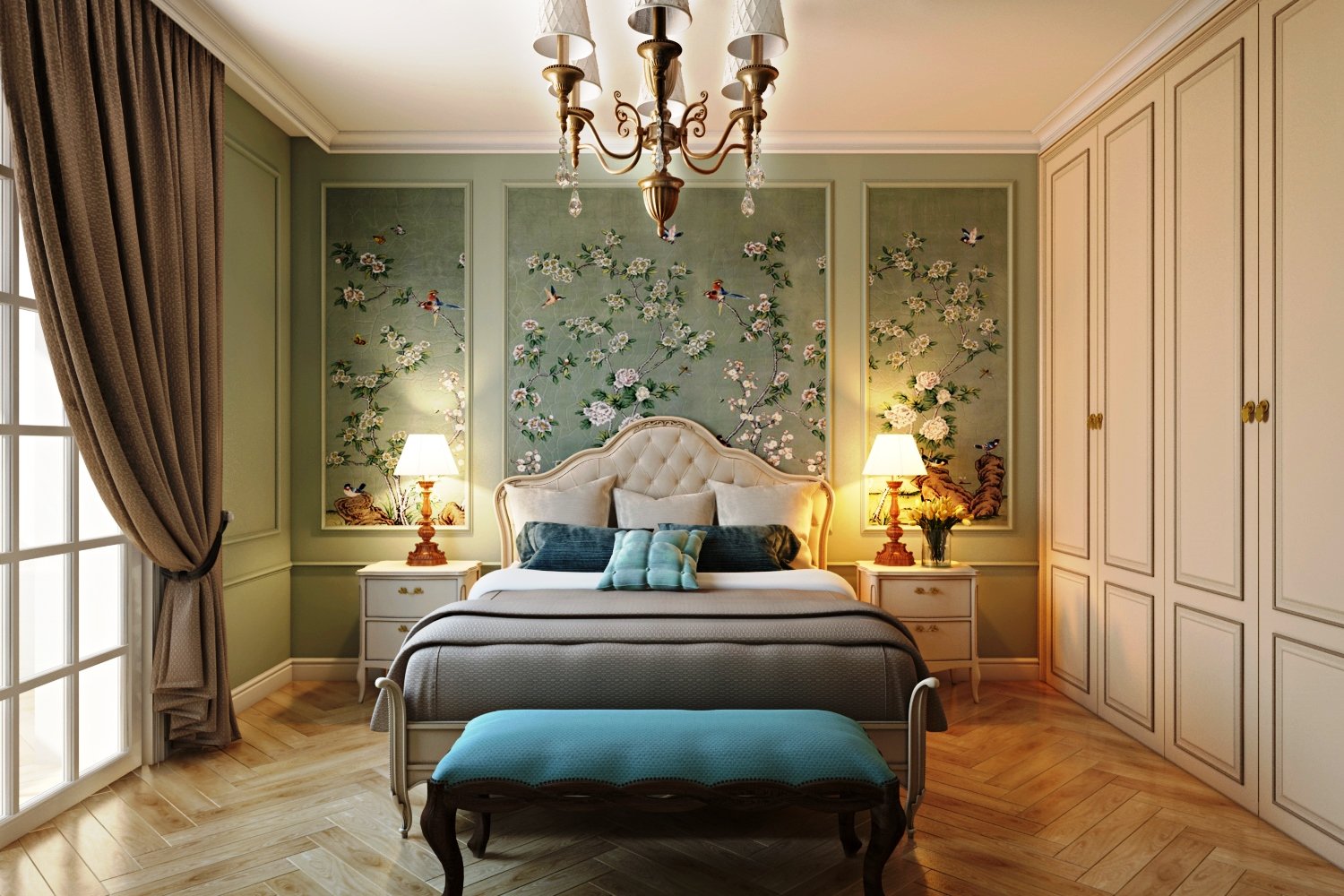 Молдинги в интерьере спальни