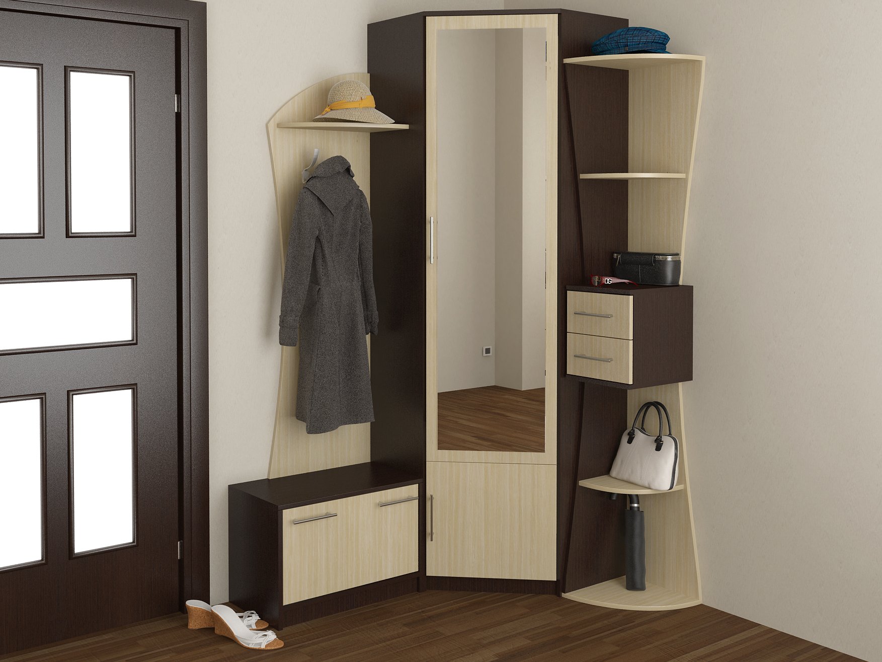 Угловая прихожая в маленький коридор