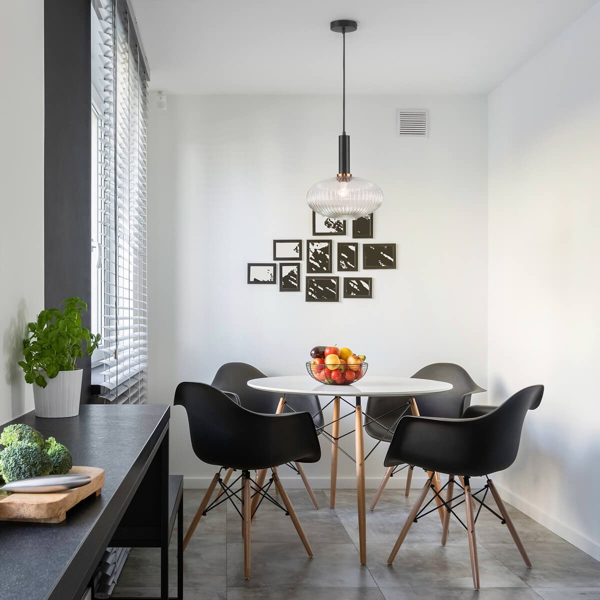 Черный светильник над столом