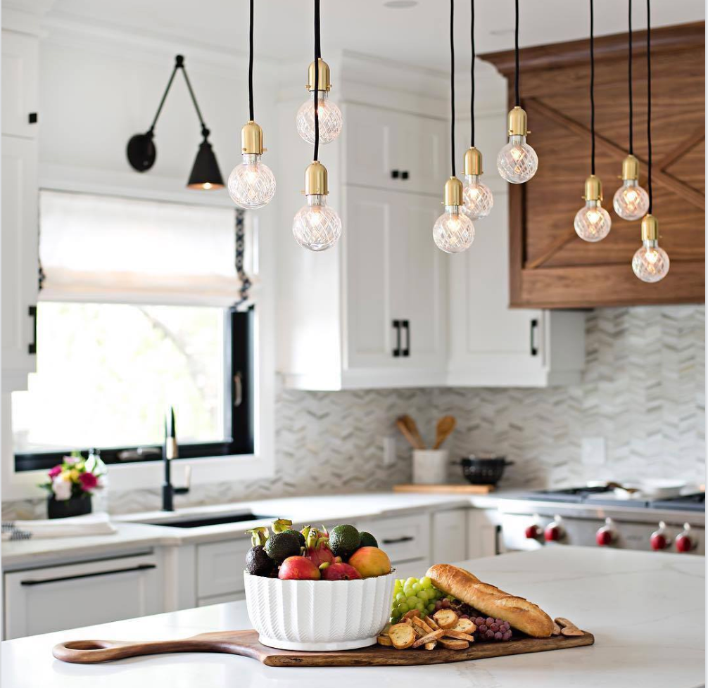 Люстра над кухонным островом