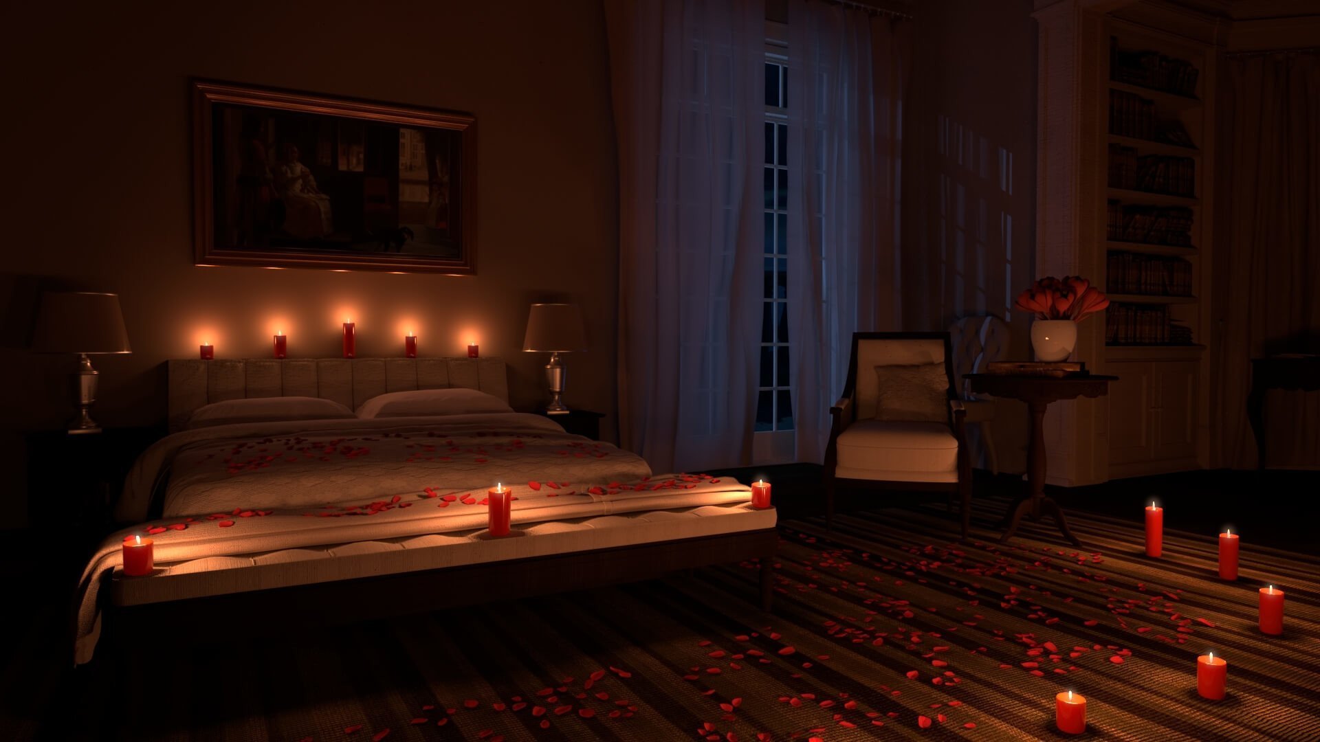 Темная комната со свечами